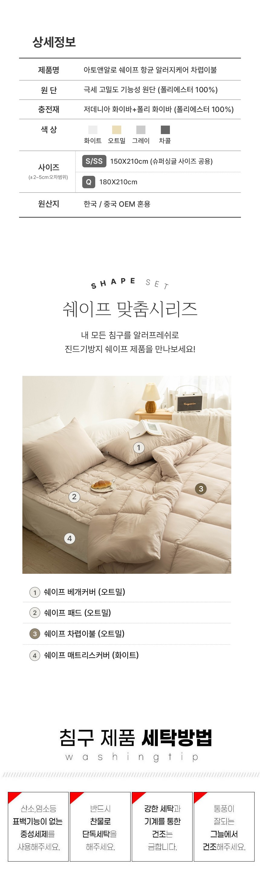- 세탁방법: 세탁기사용가능