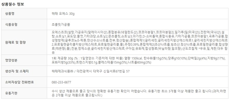 | 생산자 및 소재지 | 상품 상세페이지 참조 | 제조연월일, 소비기한 또는 품질유지기한 | 상품 상세페이지 참조 |