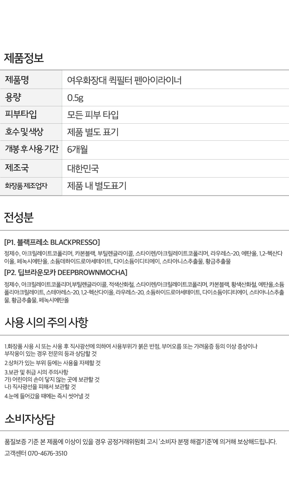 | 용량(중량) | 0.5g | 제품 주요 사양 | 모든 피부용 |