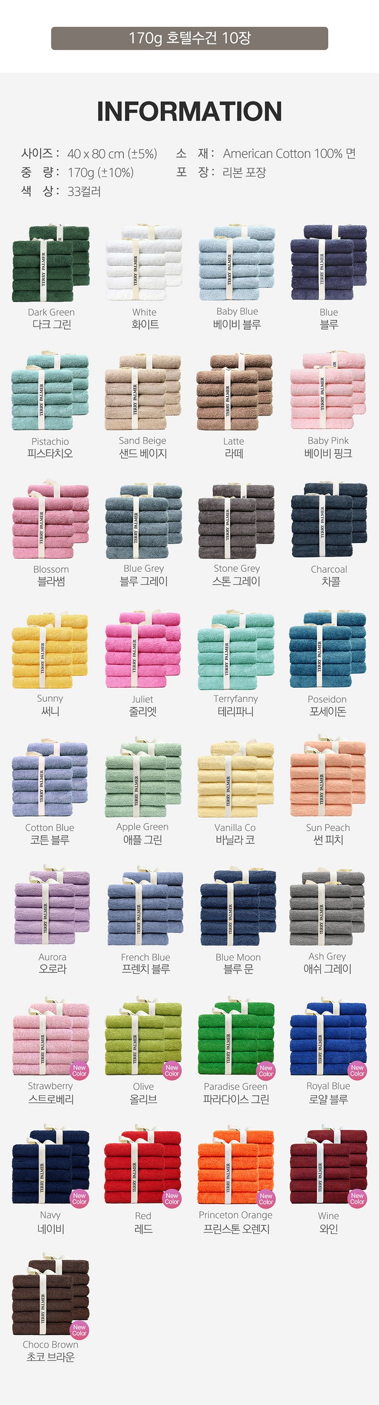 테리파머 무형광 호텔수건 170g 10장 수건세트 40x80 면사 코마사 타올 수건 타월 호텔타올 호텔타월 30수, 베이비블루, 10개