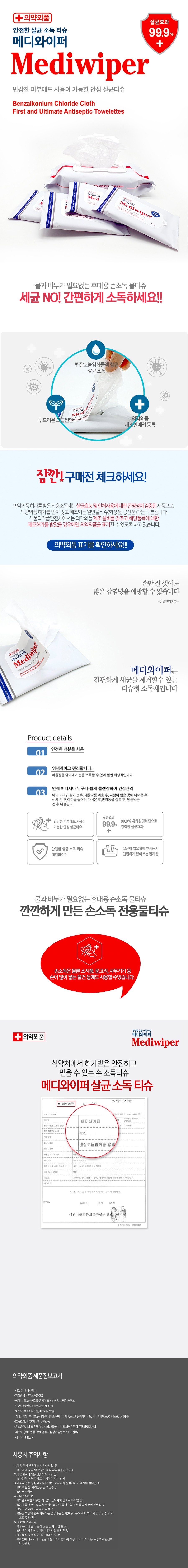 | 품명 및 모델명 | 메디와이퍼 손소독티슈 | 인증/허가 사항 | 의약외품 |