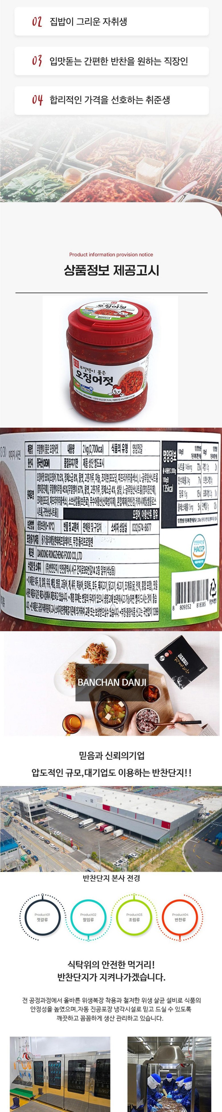 | 생산자 및 소재지 | DANGDONG RONGZHENG FOOD CO.,LTD(중국)/수입업자:반찬단지 | 제조연월일, 소비기한 또는 품질유지기한 | 제조연월일:2025년1월이후수시생산/소비기한:제조일로부터12개월 |