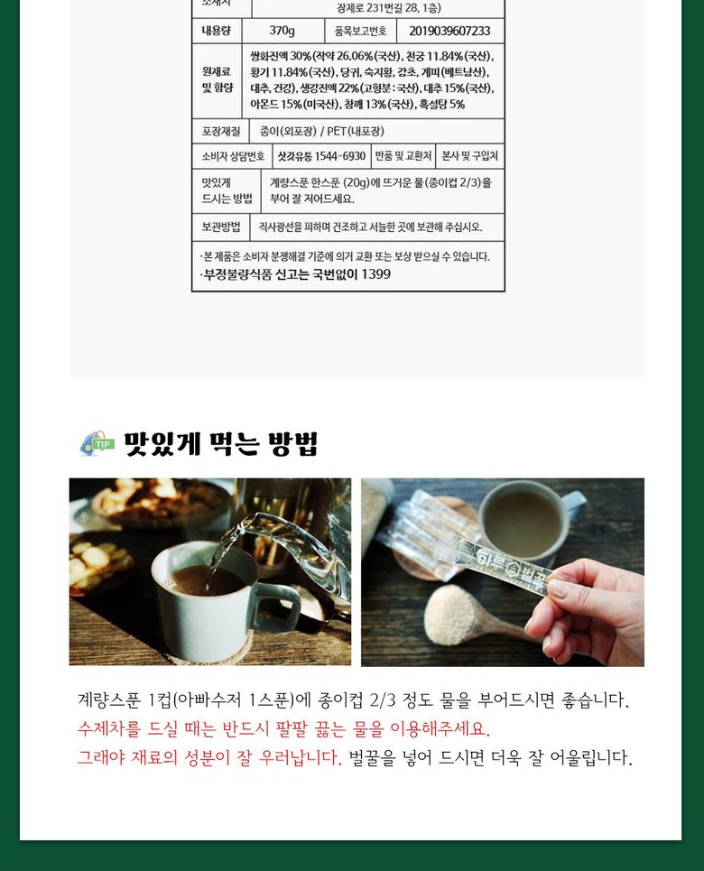 | 제품명 | 상품 상세페이지 참조 | 식품의 유형 | 상품 상세페이지 참조 |