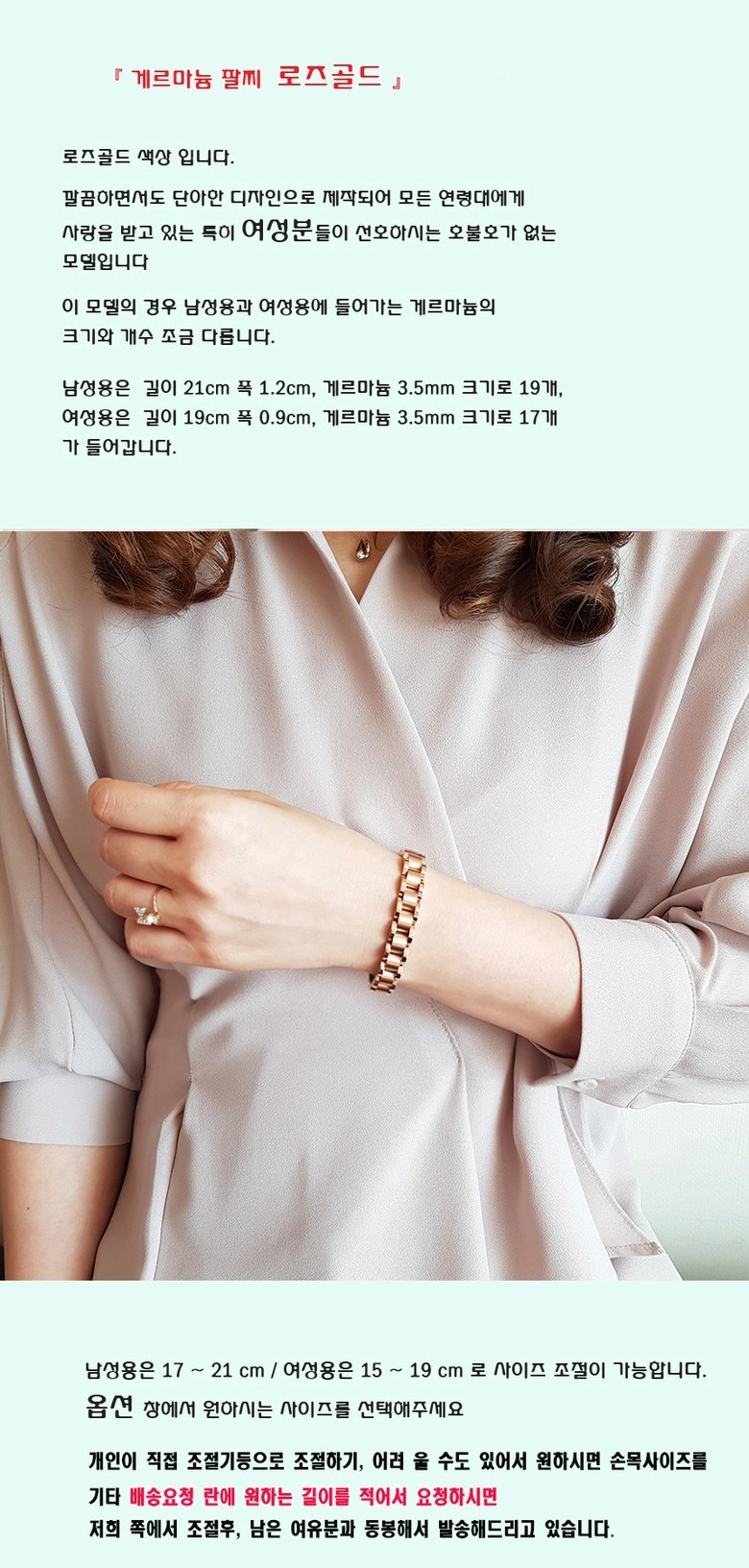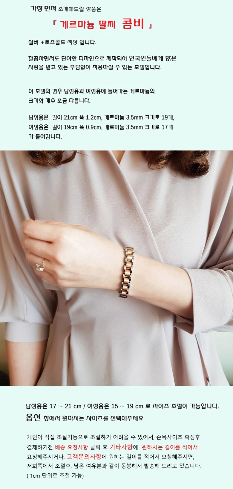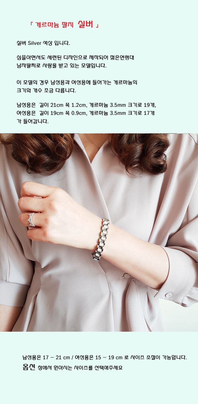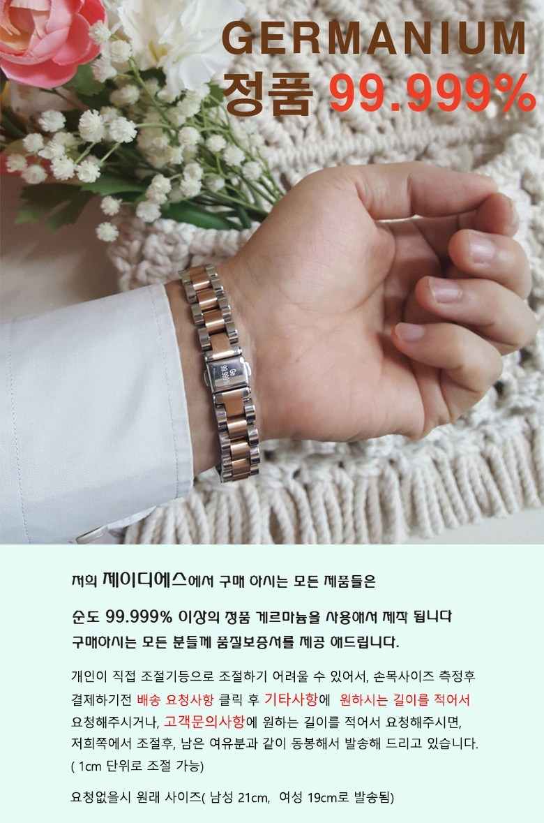 | 종류 | 체인형 팔찌 | 소재 | 써지컬스틸 게르마늄원석 |
