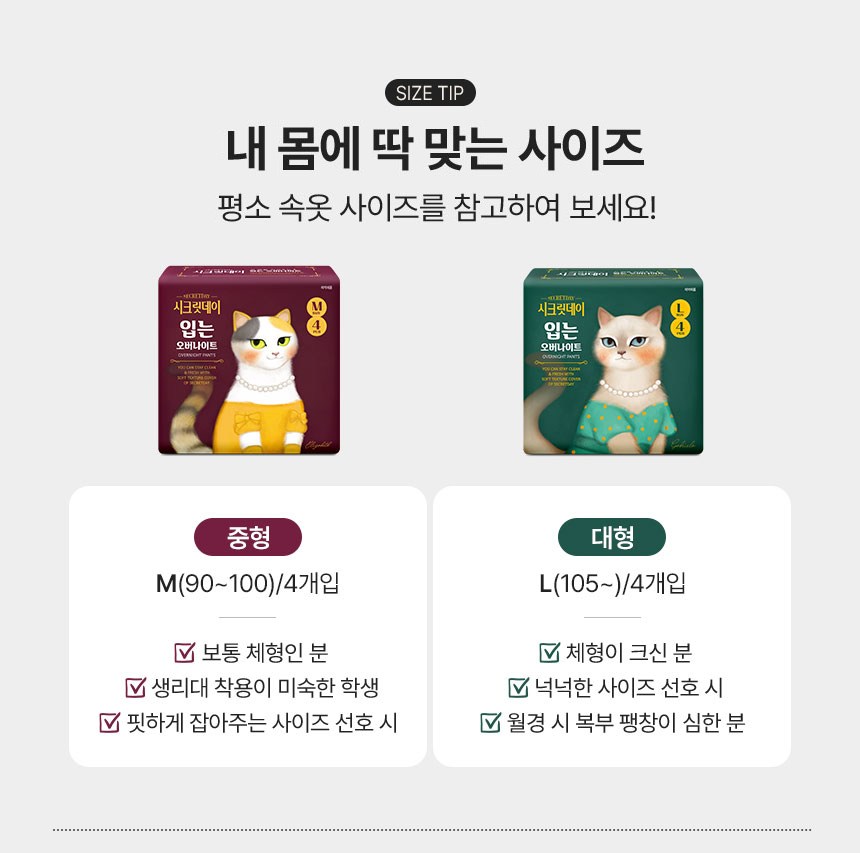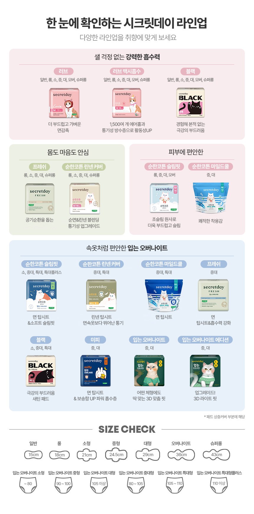 | 품명 및 모델명 | 시크릿데이하트오버나이트팬티중형 | 인증/허가 사항 | 의약외품 |