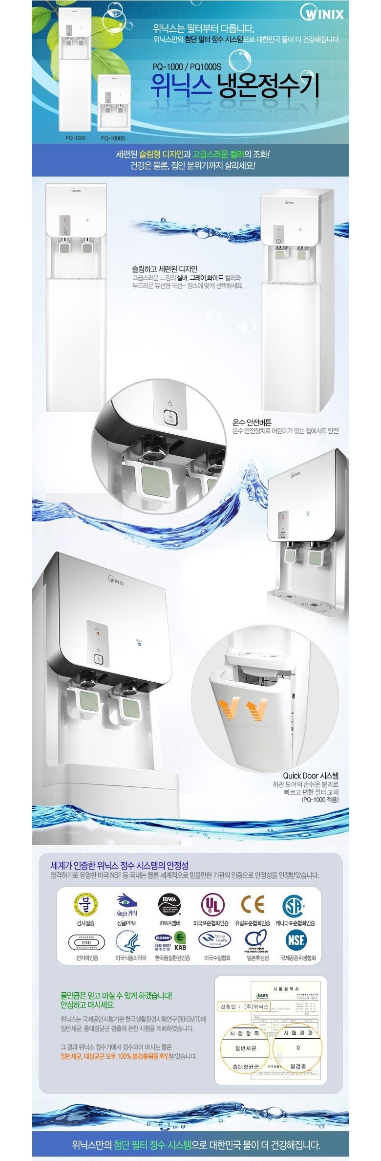 | 품명 및 모델명 | 위닉스 정수기 PQ-1000/ PQ-1000S | KC 인증정보 | SH-07022-15005 |