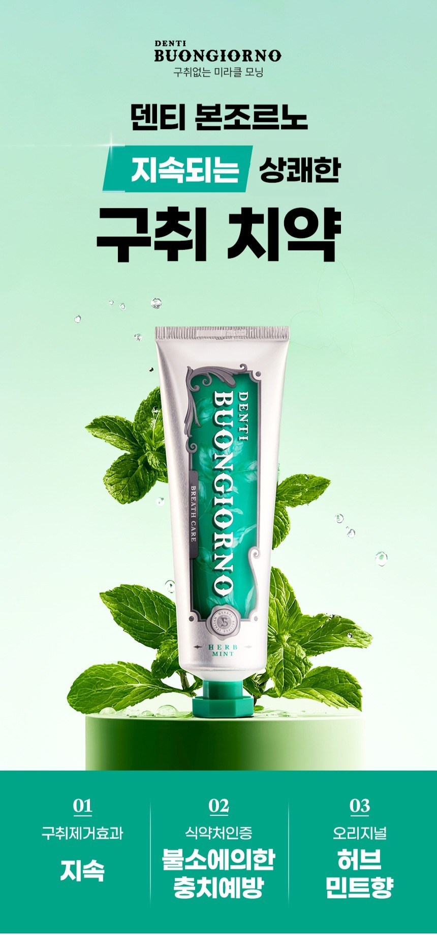 | 품명 및 모델명 | 리뉴얼 전 : 덴티본조르노구취치약 / 리뉴얼 후: 덴티본조르노 허브민트향 구취치약 | 인증/허가 사항 | 의약외품 |