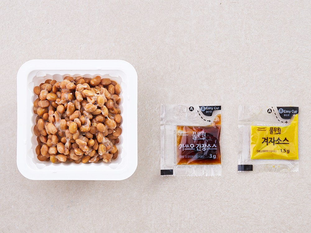 나또, 가쓰오 간장소스, 겨자소스로 구성되어 있습니다.