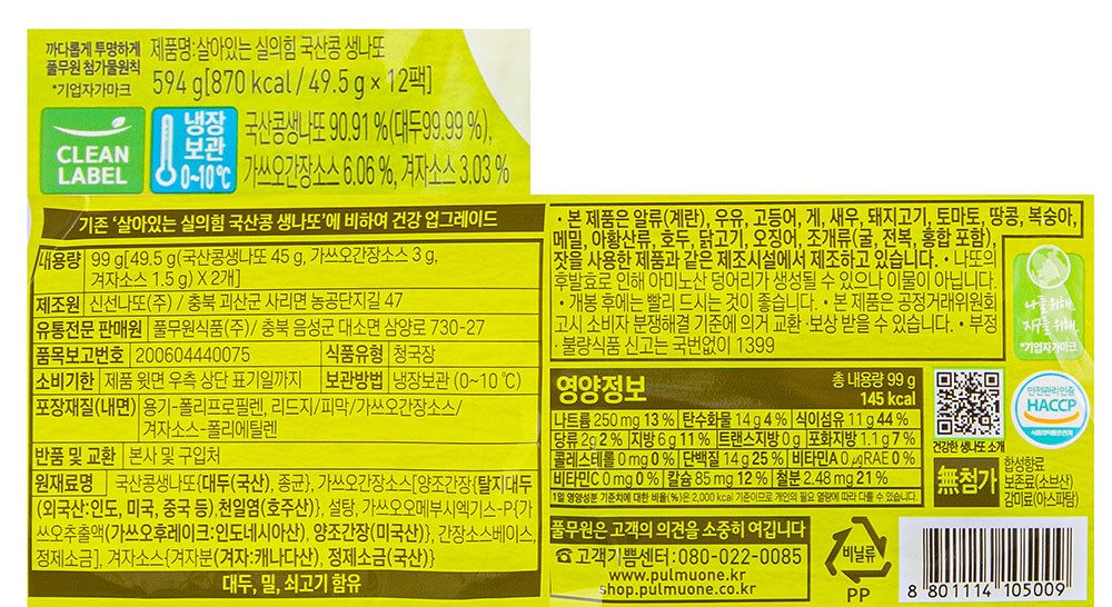 | 제품명 | 살아있는 실의힘 국산콩 생나또 | 식품의 유형 | 컨텐츠 참조 |