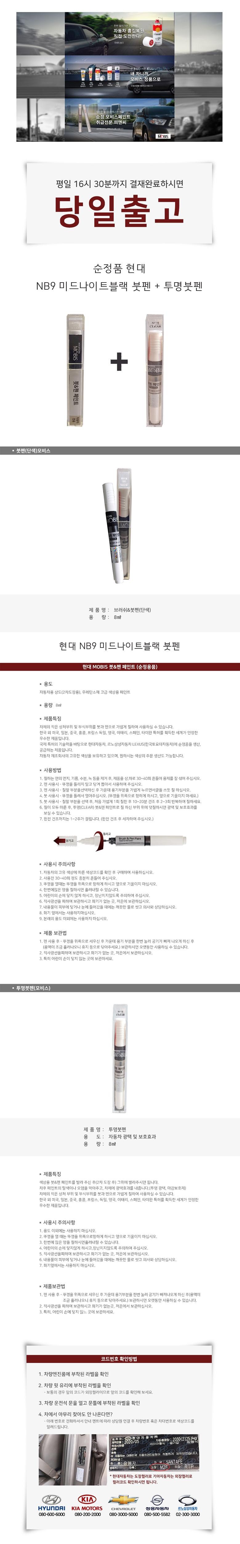 | 품명 및 모델명 | 순정품 현대모비스 그랜져IG하이브리드 NB9 미드나이트블랙 붓펜 + 투명붓펜 | 인증/허가 사항 | 자가검사번호 D-A11B-J001004-A160 D-A11B-J00010004-A161 |