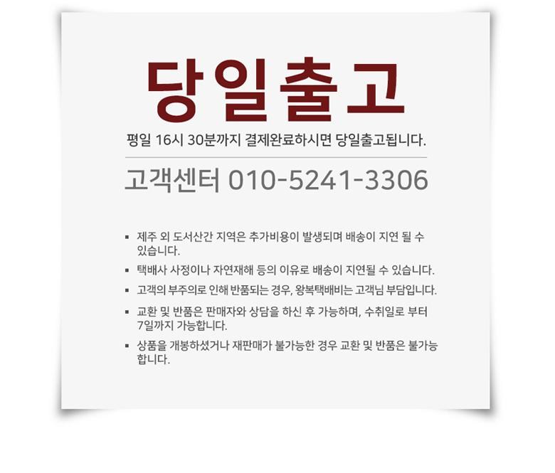 | 배송기간 | ㆍ도서산간 지역 등은 배송에 3-5일이 더 소요될 수 있습니다. - 천재지변, 물량 수급 변동 등 예외적인 사유 발생 시, 다소 지연될 수 있는 점 양해 부탁드립니다. | ||