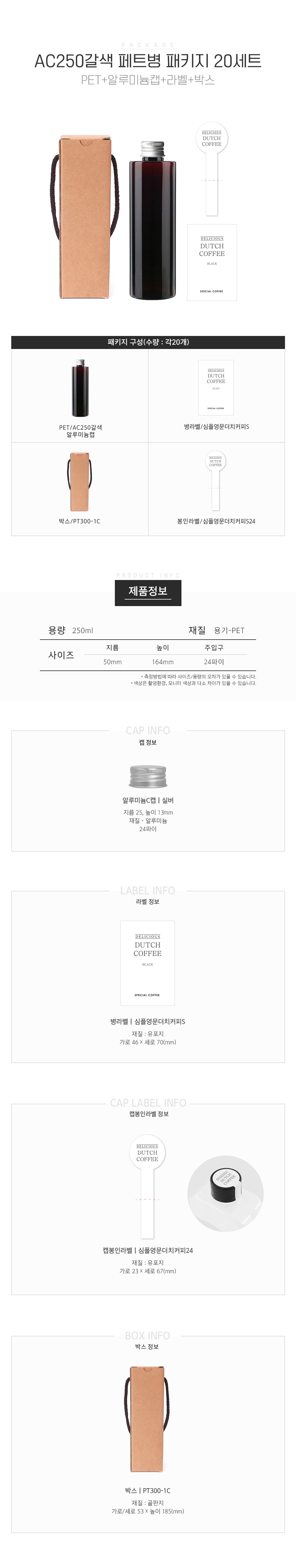 AC250 갈색 페트병 250ml + 알루미늄캡 + 심플영문더치커피S 라벨 2종 + 박스 세트