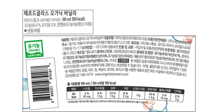| 제품명 | 떼르드글라스 오가닉 바닐라 | 식품의 유형 | 컨텐츠 참조 |
