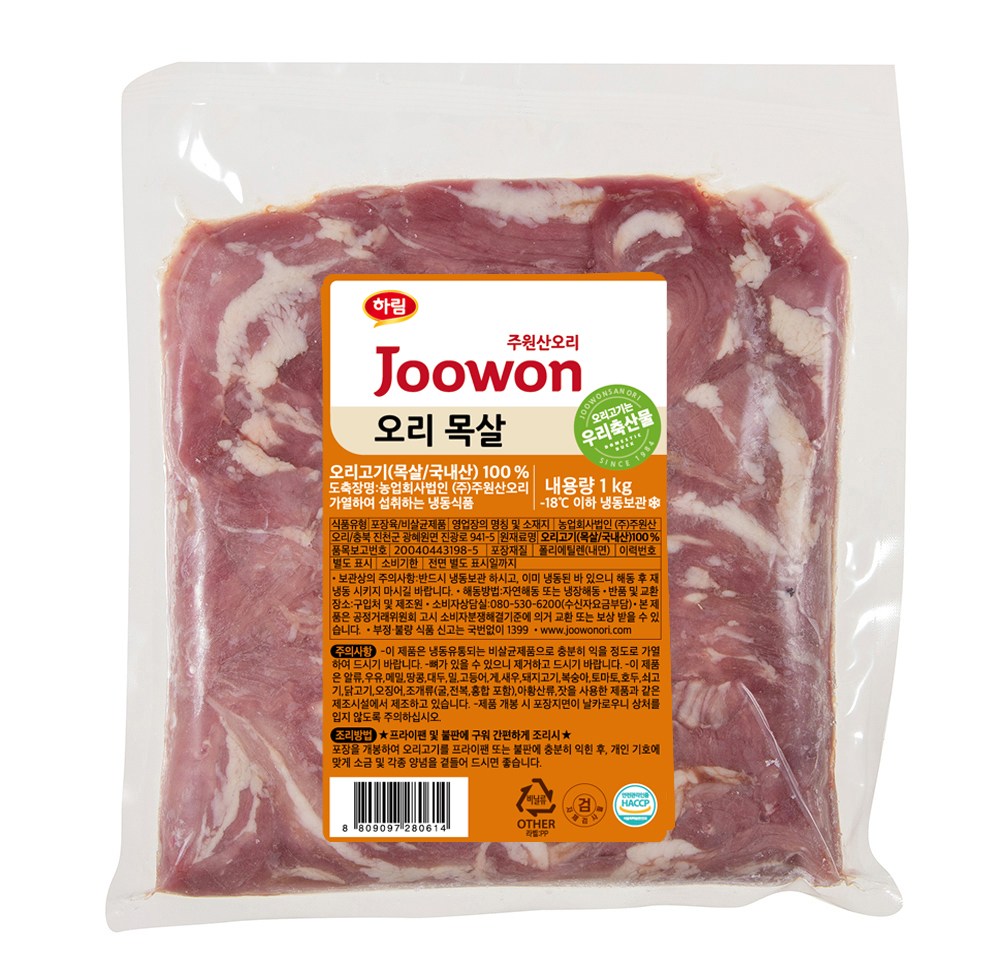 주원산오리는 오리 가공 관련 우수한 기술을 보유한 오리고기 전문 기업입니다. 양질의 사료를 먹고 자란 주원산오리는 잡내가 없고 육질이 부드럽습니다. 신선한 선홍빛 육질이 주원산오리만의 특별함을 보여줍니다.