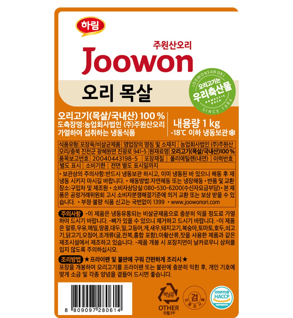 하림의 노하우 그대로 만든 오리고기, 주원산오리