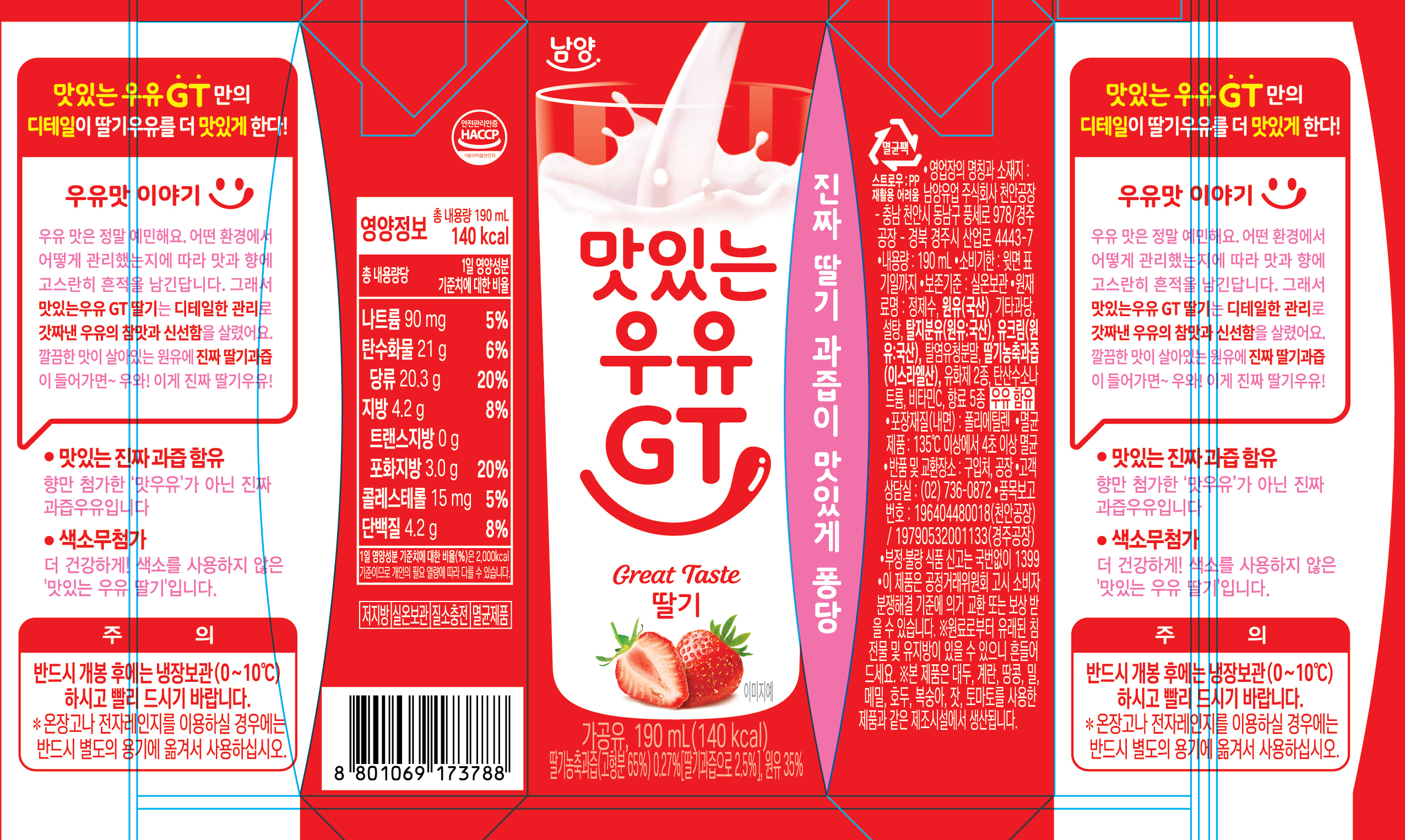 | 제품명 | 맛있는 우유 딸기 | 식품의 유형 | 가공유 |