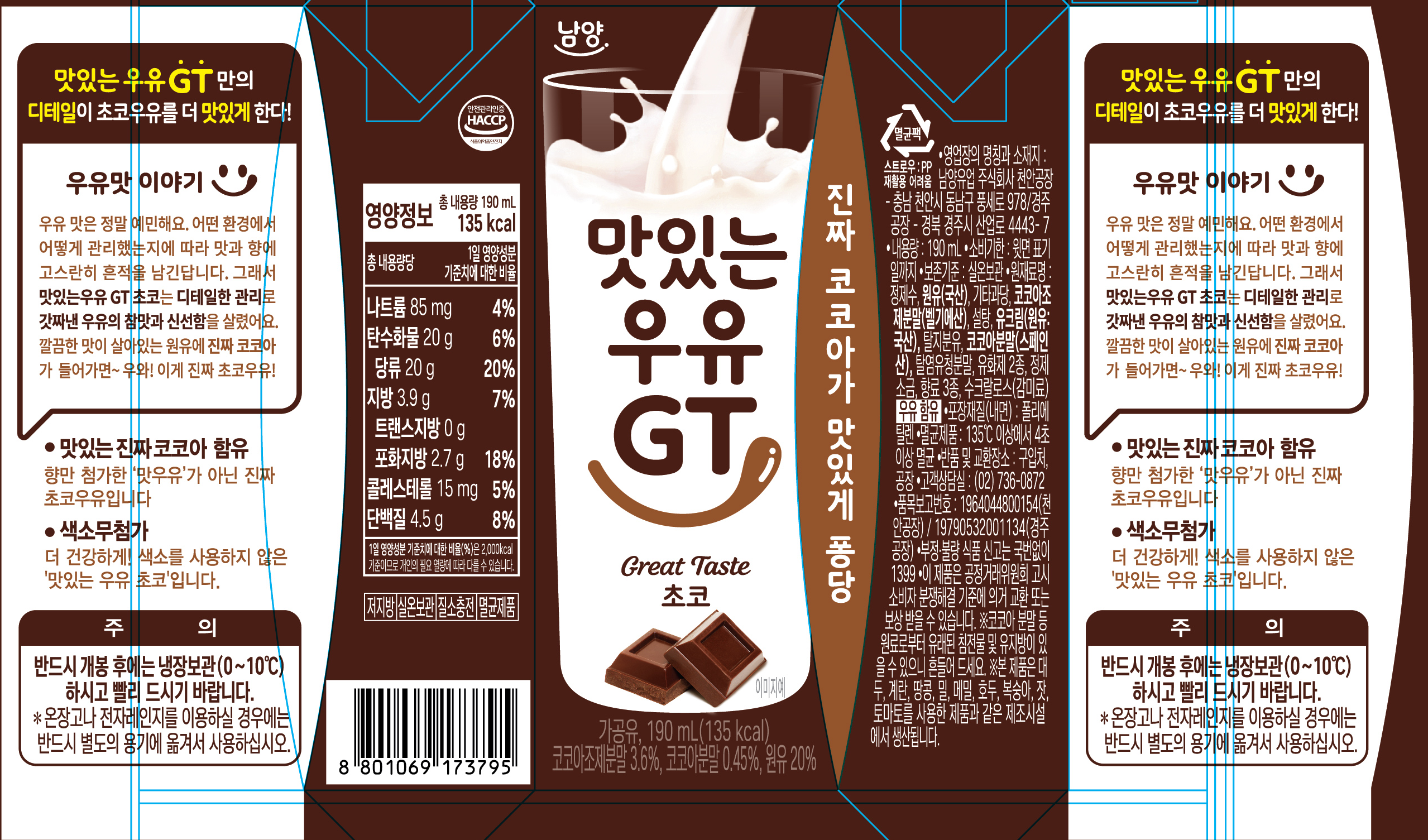 | 제품명 | 맛있는 우유 초코 | 식품의 유형 | 가공유 |