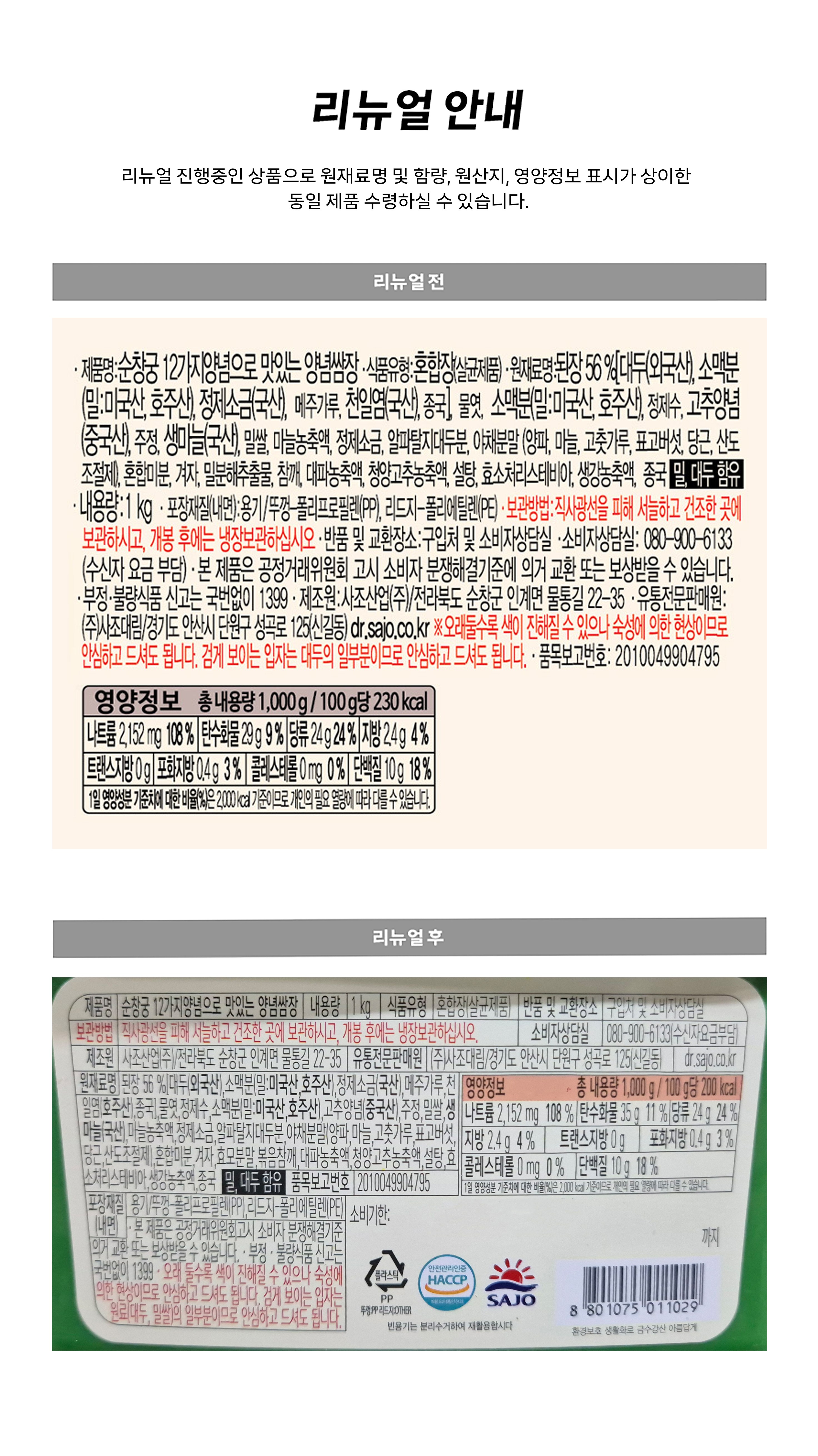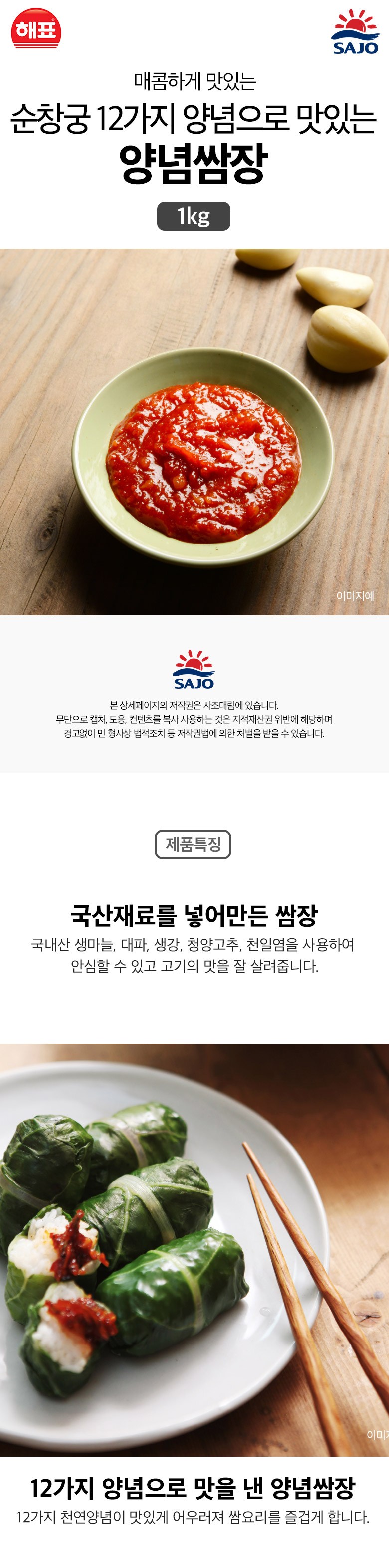 | 제품명 | 순창궁 12가지양념으로 맛있는 양념쌈장 | 식품의 유형 | 혼합장(살균제품) |