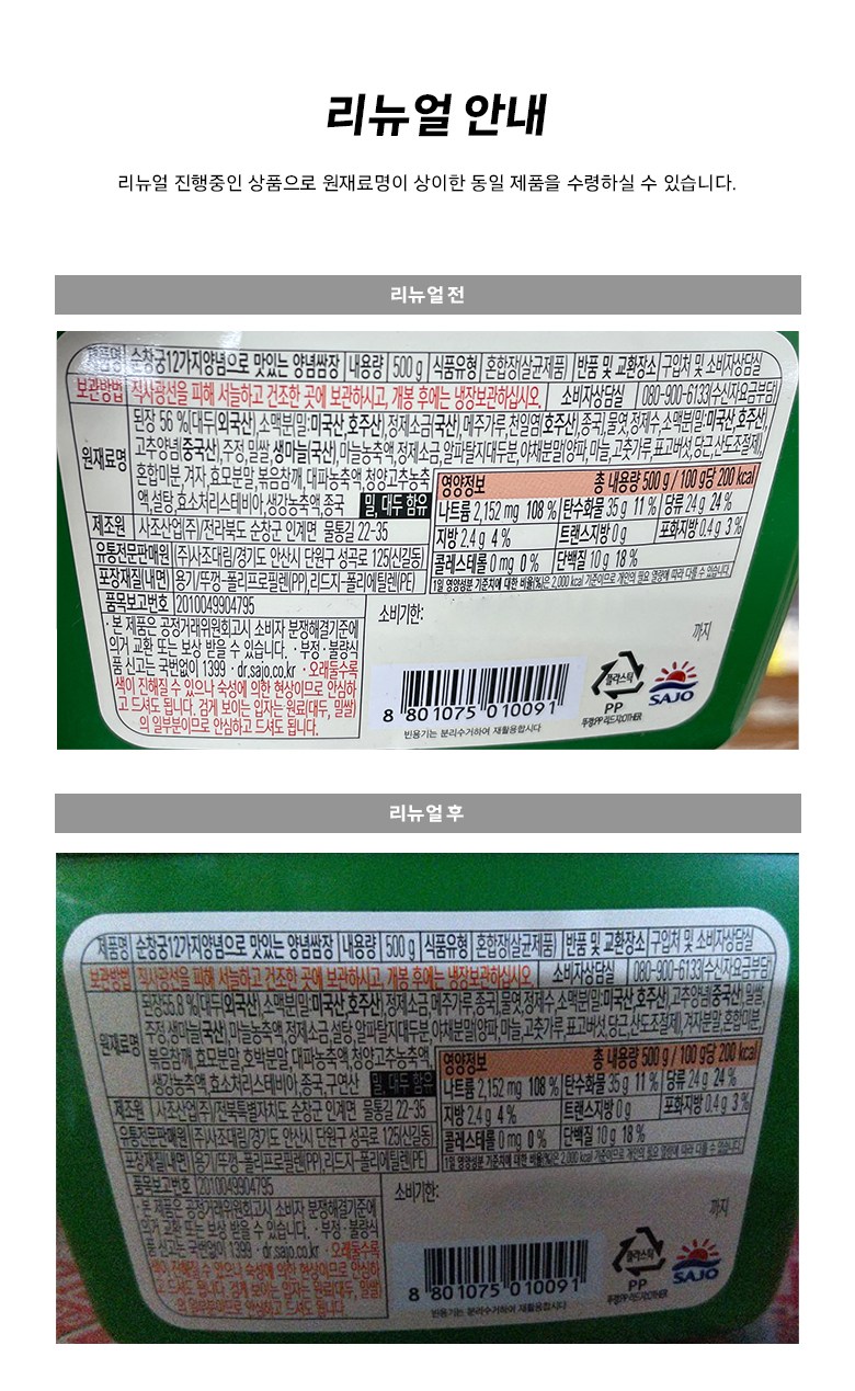 | 제품명 | 컨텐츠 참조 | 식품의 유형 | 컨텐츠 참조 |