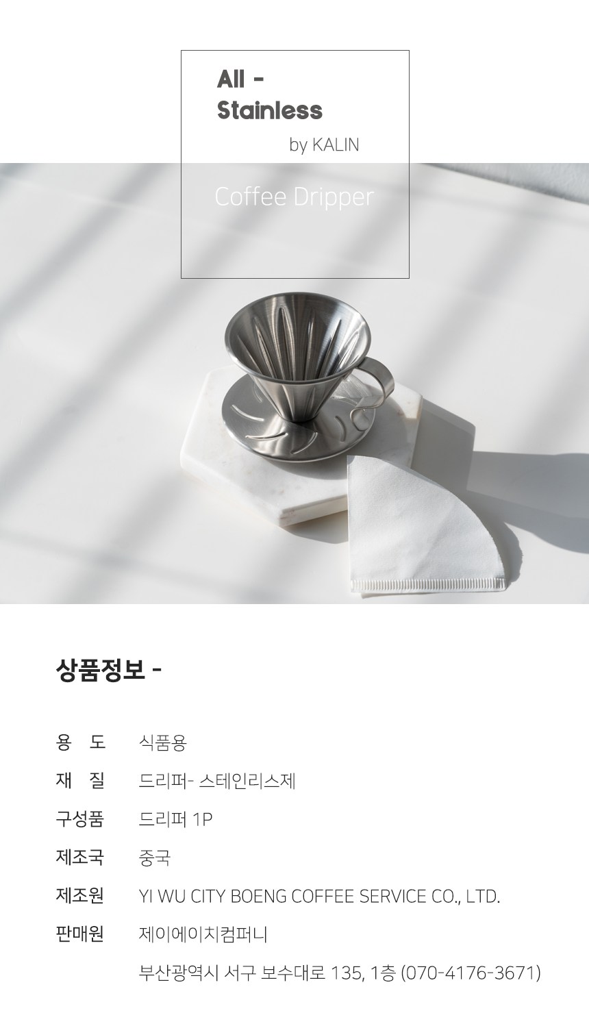 | 품명 및 모델명 | 스테인리스 드리퍼 | 재질 | 컨텐츠 참조 |