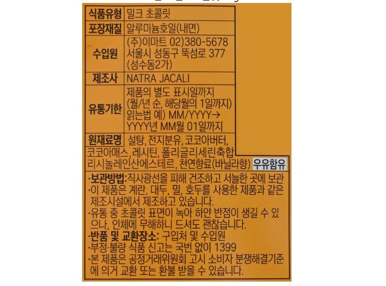 | 제조연월일, 소비기한 또는 품질유지기한 | 상품 상세페이지 참조 | 세부 품목군별 표시사항 | 상품 상세페이지 참조 |