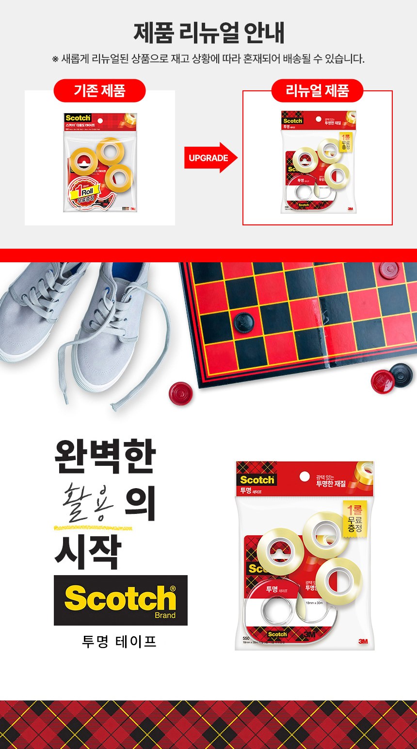 스카치 투명 테이프 디스펜서 581D 18mm x 15mm 1개 + 550리필 18mm x 30mm 3개, 혼합색상, 1세트