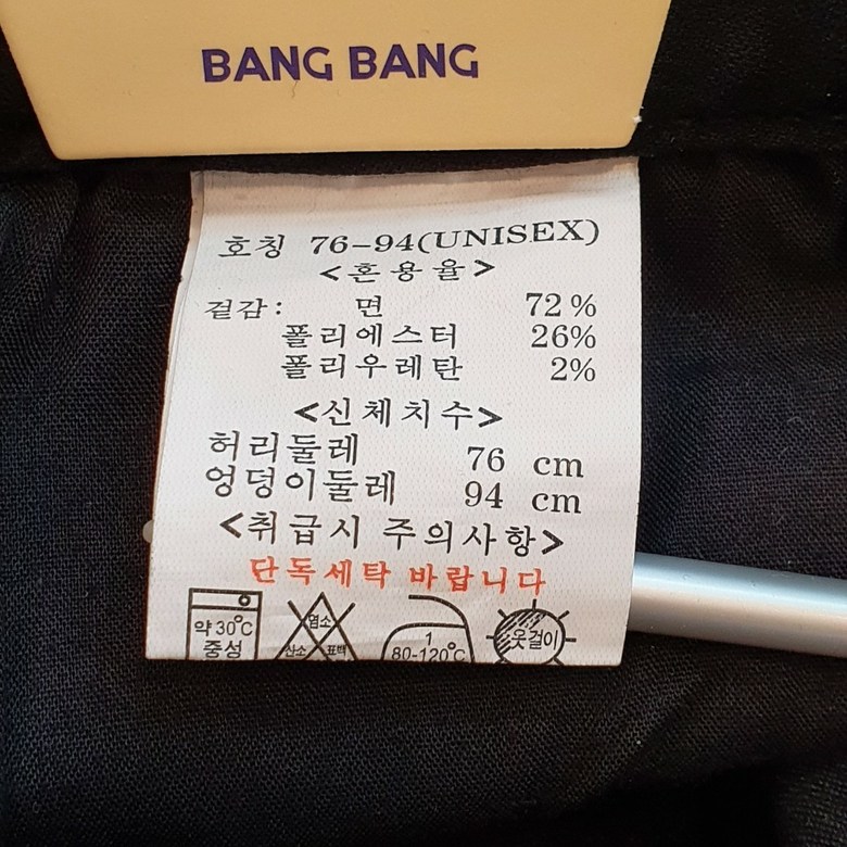 - 하의 사이즈: 남성 32~33인치