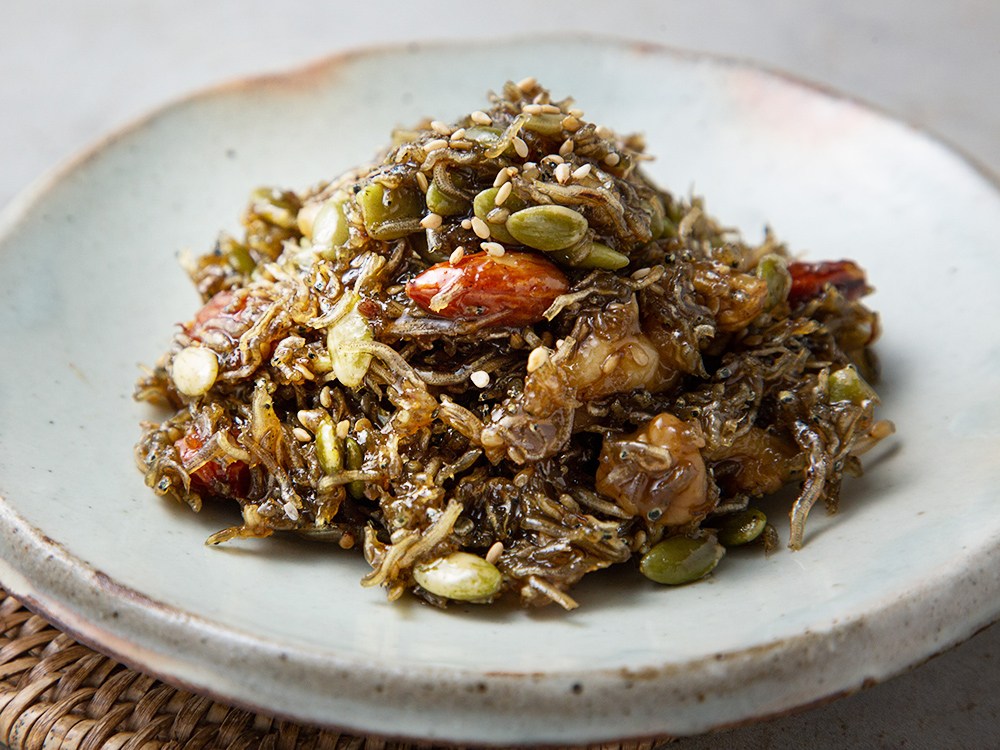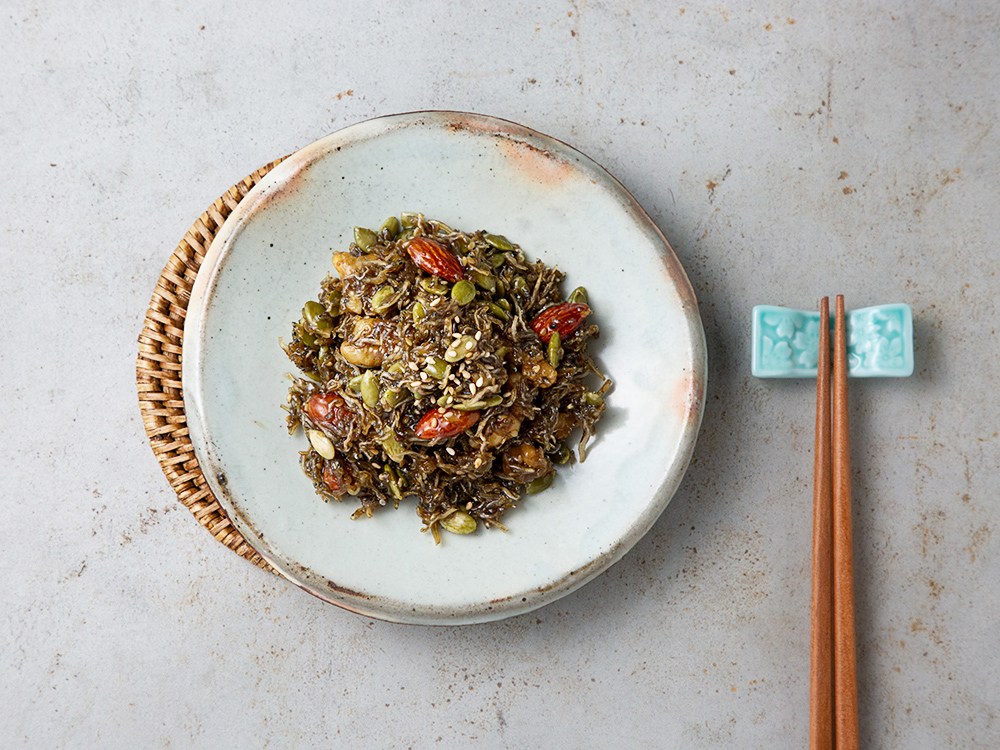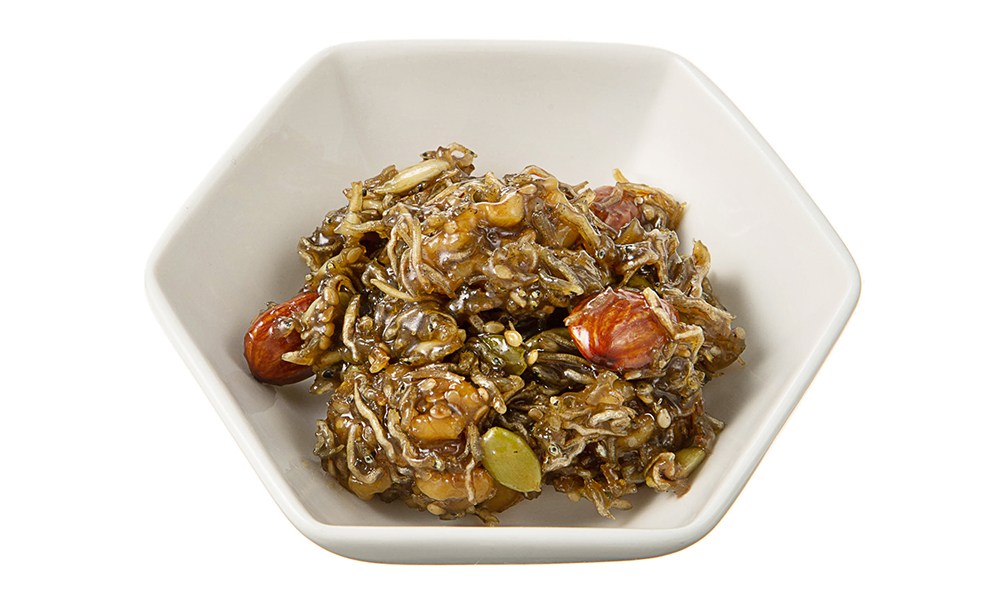 믿을 수 있는 재료들로 정성껏 만든 비비고의 견과류 멸치볶음이에요. 품질 좋은 멸치를 건조한 후 입맛 돋우는 간장 양념을 골고루 무쳤죠. 여기에 비비고만의 비법이 담긴 한식 발효장으로 깔끔한 감칠맛을 즐기실 수 있는데요. 호박씨, 호두, 아몬드 등 견과류 또한 듬뿍 들어가 맛과 식감을 더했답니다. 씹을수록 구수한 풍미를 입안 가득 선사하는 견과류 멸치볶음. 따끈한 밥과 함께 반찬으로 즐겨도 좋고, 주먹밥, 김밥 속 재료로 활용하면 더욱 풍성하게 드실 수 있답니다. 번거로운 과정 없이 간편하게 완벽한 밥상을 연출해보세요.