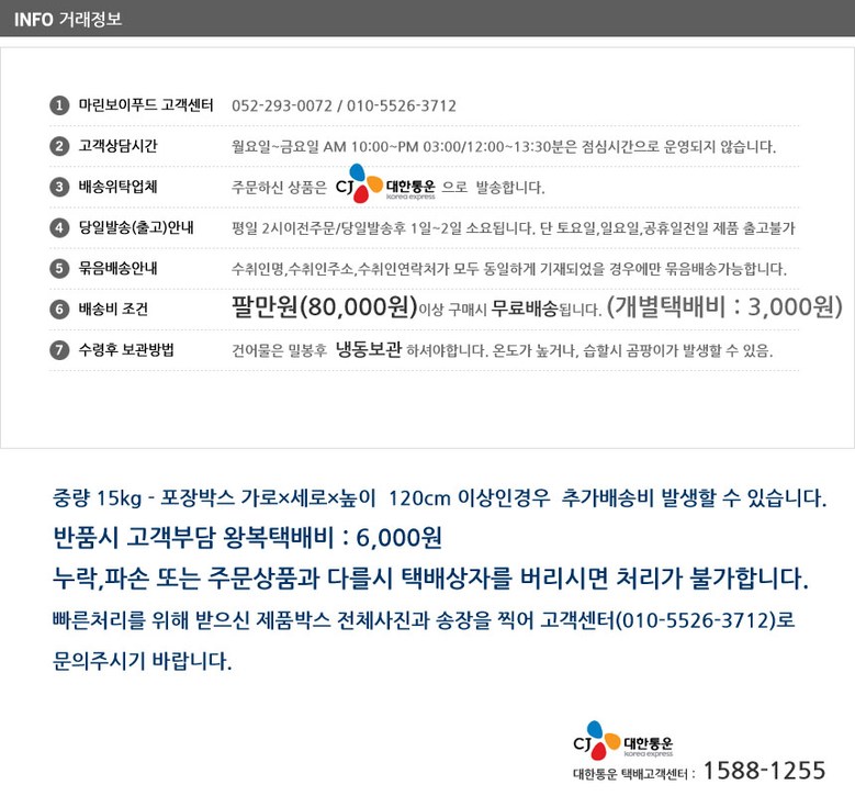 | 생산자(수입자) | 생산자가 다수이고,상품의 특성상 수시로 입고되는 상품으로 매번 생산자 표기가 어렵습니다. 정보확인하시려면 고객센터(052-293-0072, 010-5526-3712)로 문의하시면 당일출고 대기중인 상품의 정확한 날짜를 안내해드리겠습니다. (상품수령시에도 상품포장앞면 라벨에서 정보확인가능) | 원산지 | 국내산(완도산) |