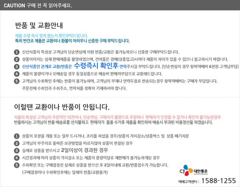 - ㆍ교환/반품에 관한 일반적인 사항은 판매자가 제시사항보다 관계법령이 우선합니다.