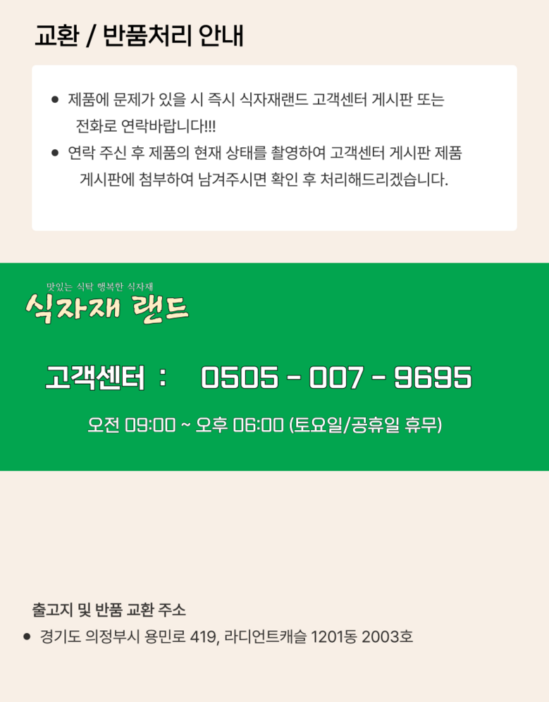 - ㆍ모니터 해상도의 차이로 인해 색상이나 이미지가 실제와 달라, 고객이 단순 변심으로 교환/반품을 무료로 요청하는 경우