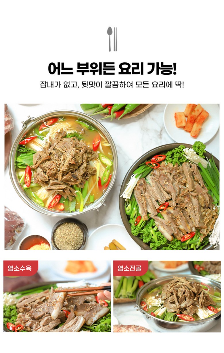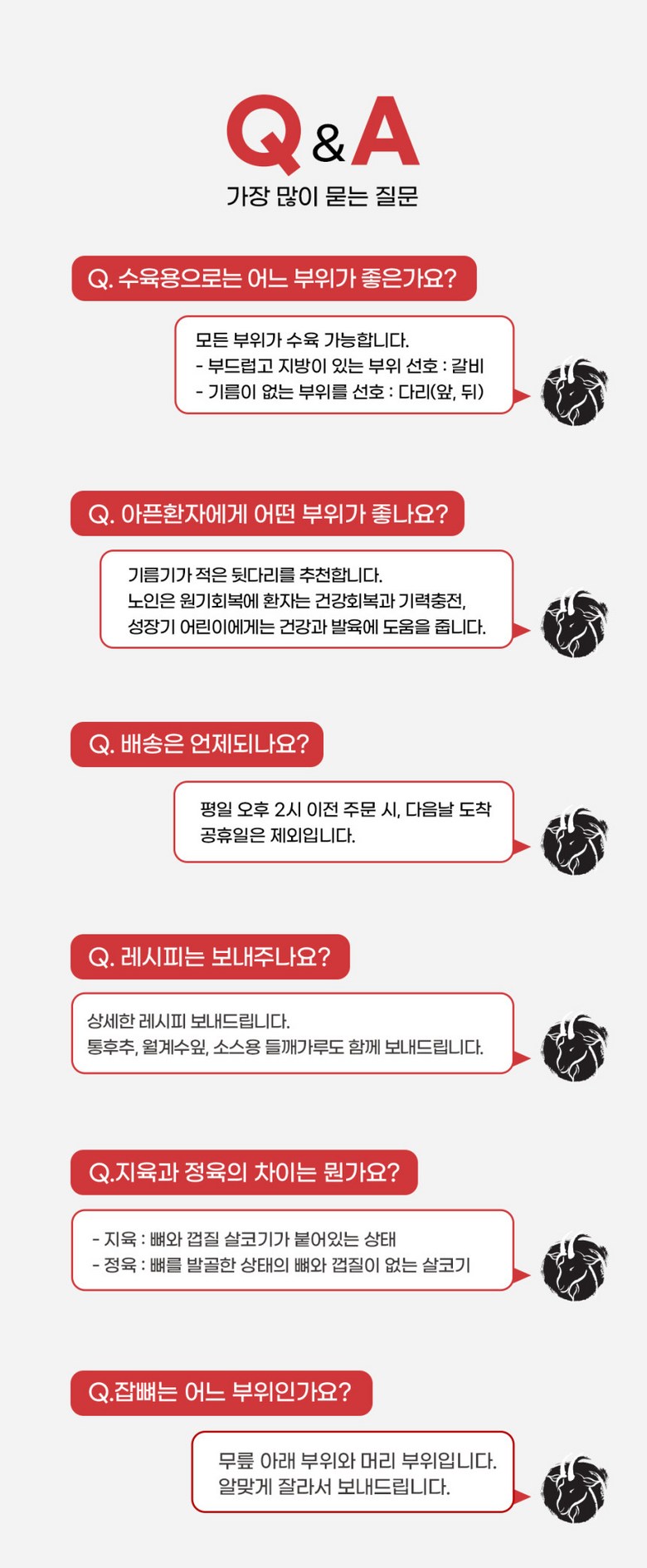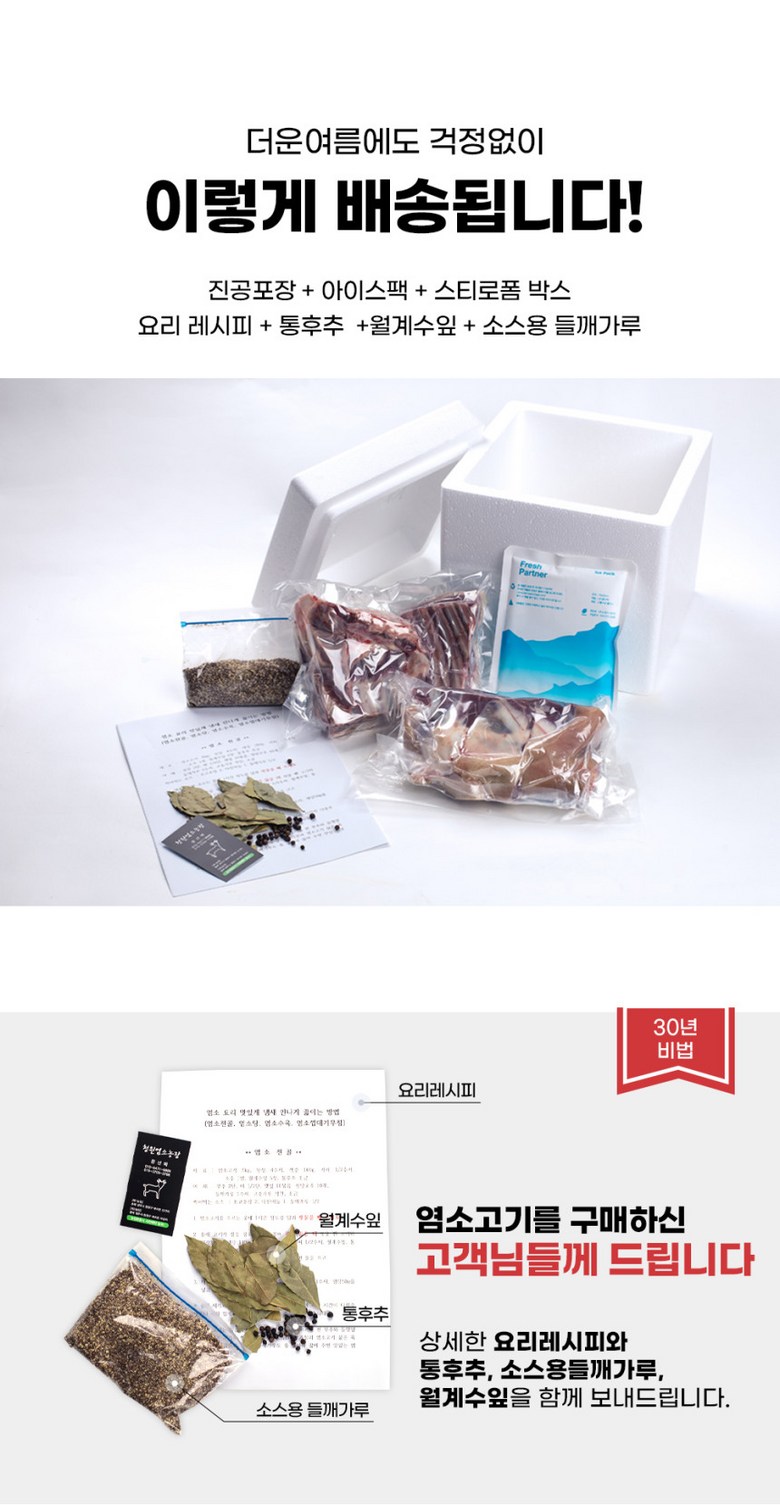 | 품목 또는 명칭 | 국내산 염소고기 2kg | 포장단위별 내용물의 용량(중량),수량,크기 | 앞다리 2kg, 뒷다리 2kg, 갈비 2kg 등 상세페이지 참조 |