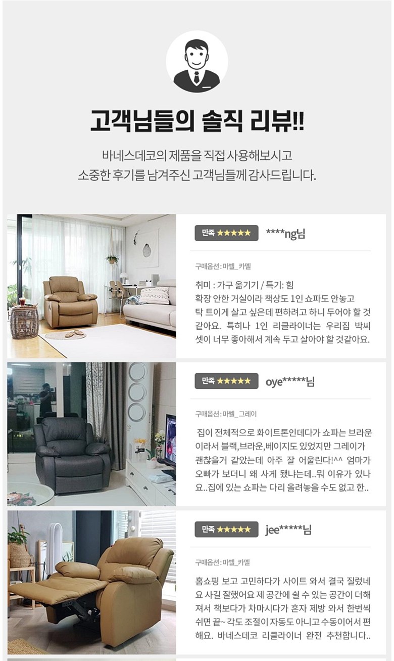 | 색상 | 카멜 | 구성품 | 리클라이너1EA |