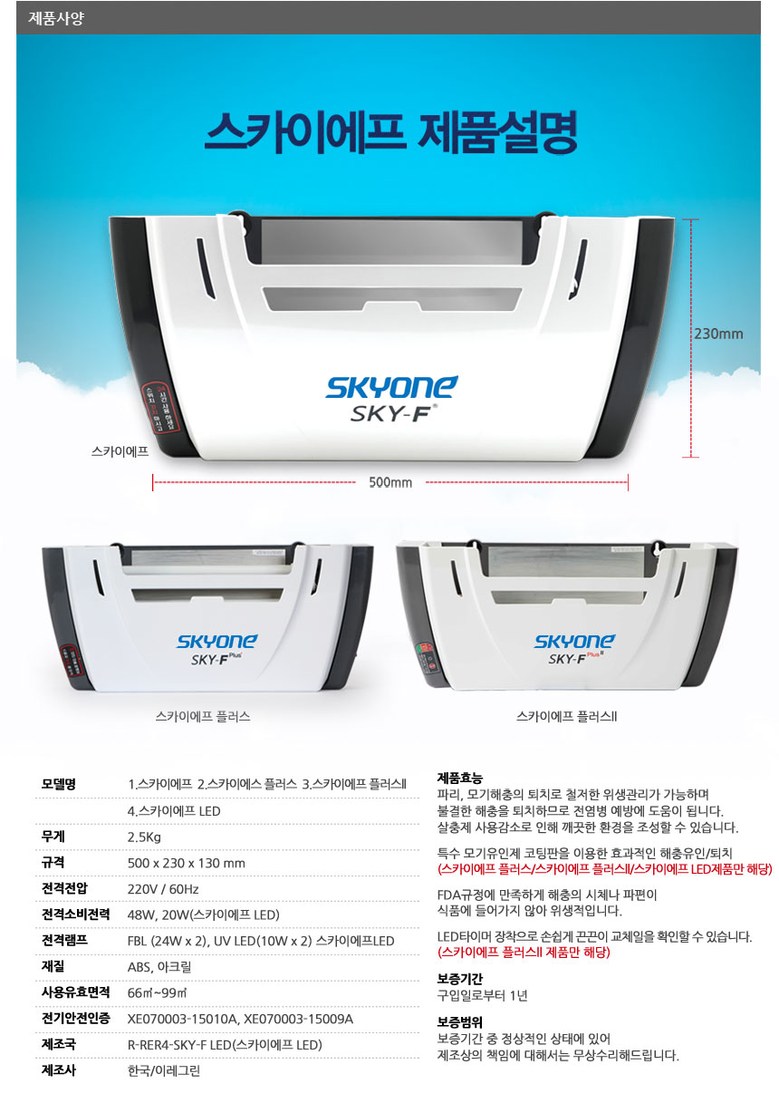 | 품명 및 모델명 | SKYONE 스카이에프3종 | 인증/허가 사항 | 상세페이지 참조 |