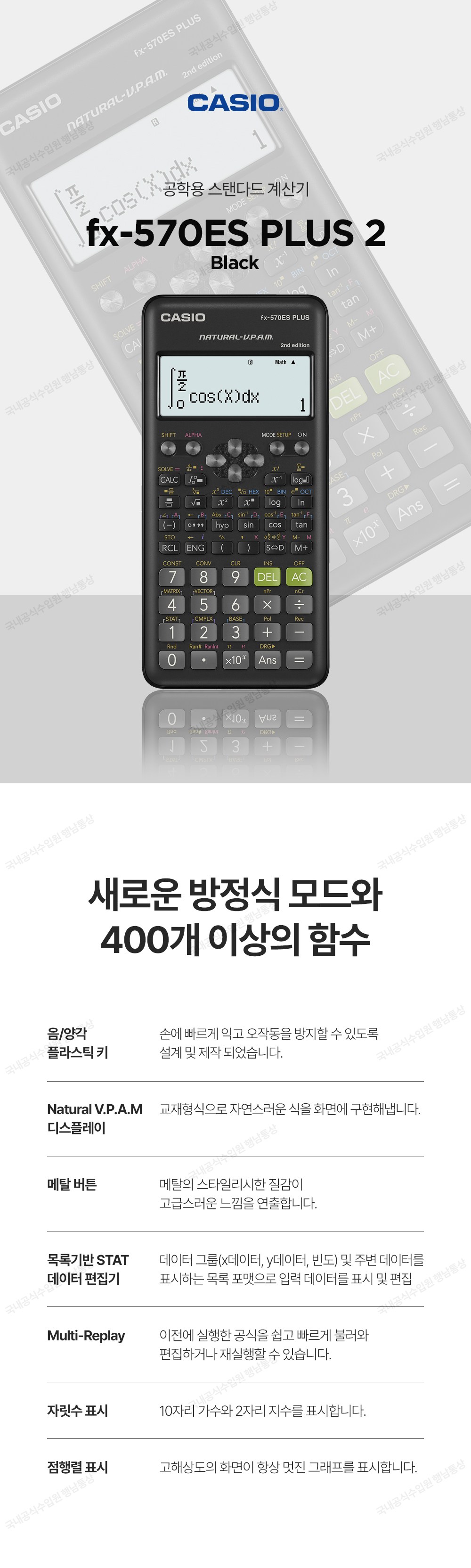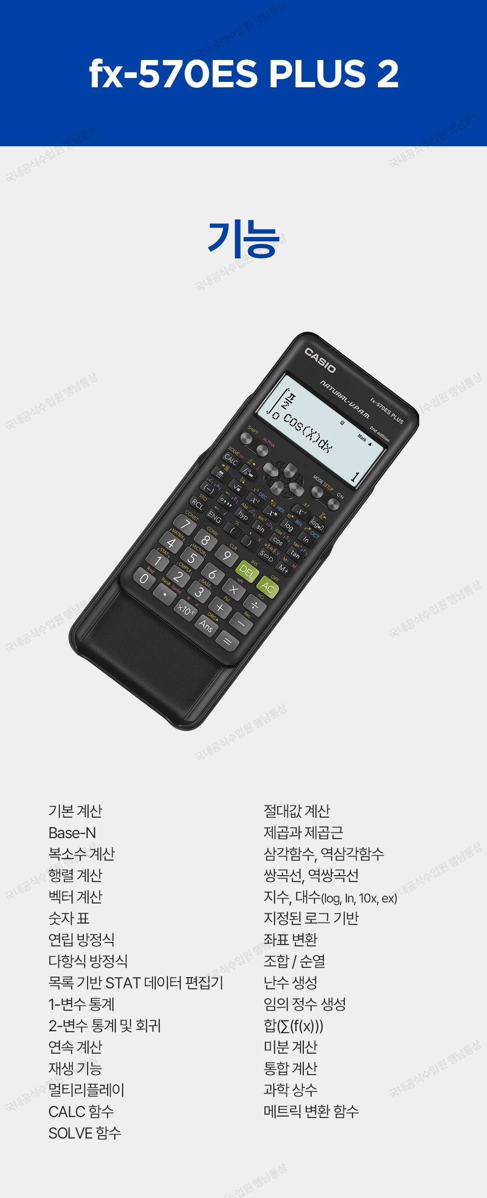 | 품명 및 모델명 | 계산기 FX-570ES PLUS 2 | 인증/허가 사항 | 본품 : 해당 없음 / 건전지 : B052R194-4001 |