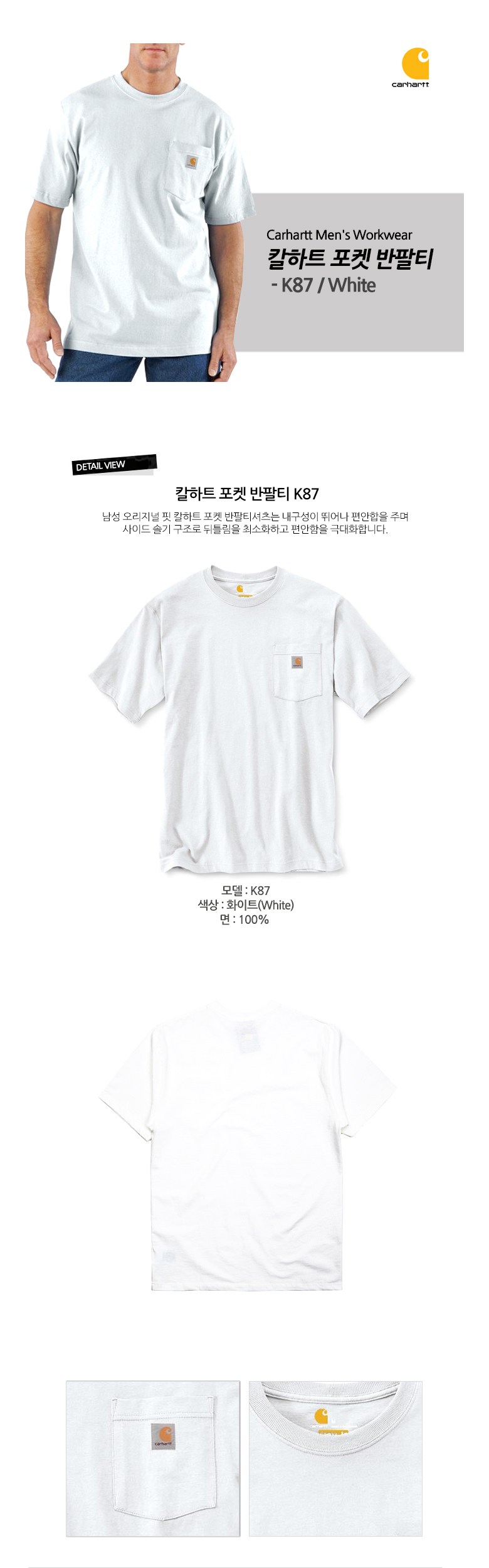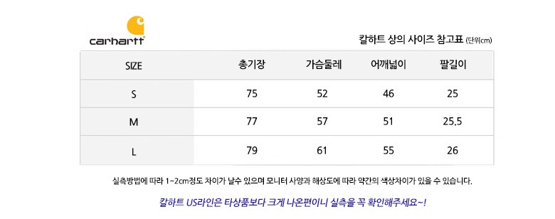 | 치수 | S,M,L | 제조자(수입자) | 칼하트 (유에스몰코리아) |