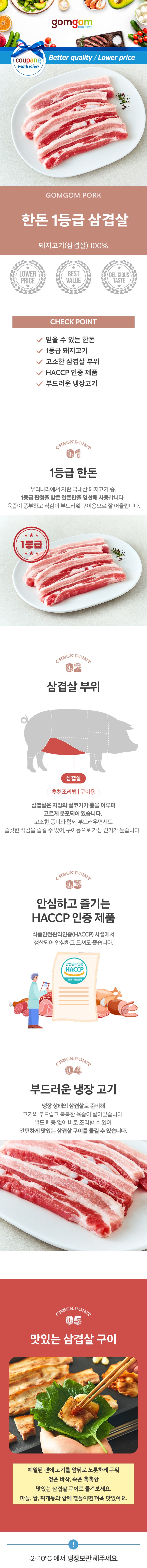 | 품목 또는 명칭 | 곰곰 한돈 1등급 삼겹살 | 포장단위별 내용물의 용량(중량),수량,크기 | 300g x 2개,1개 |