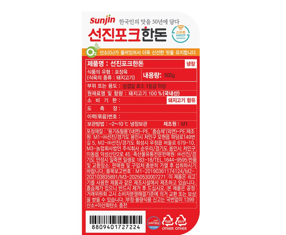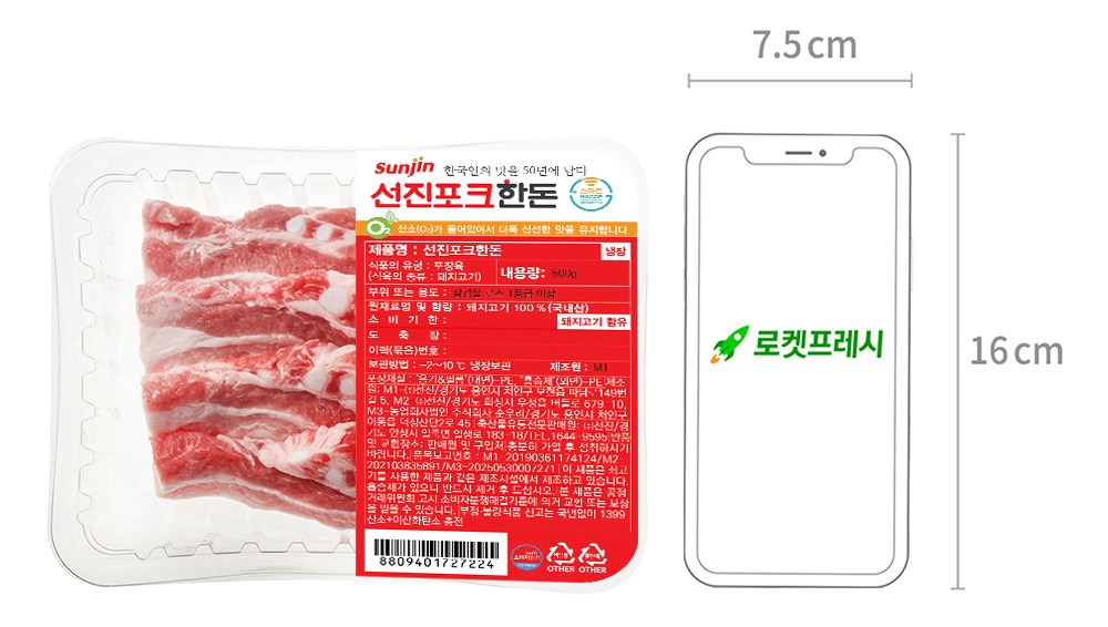 신선도를 유지하기 위해 MAP(Modified Atmospheres Packaging) 기법으로 포장했어요. 용기 내에 산소와 이산화탄소를 채워 고기의 맛과 품질을 유지합니다.