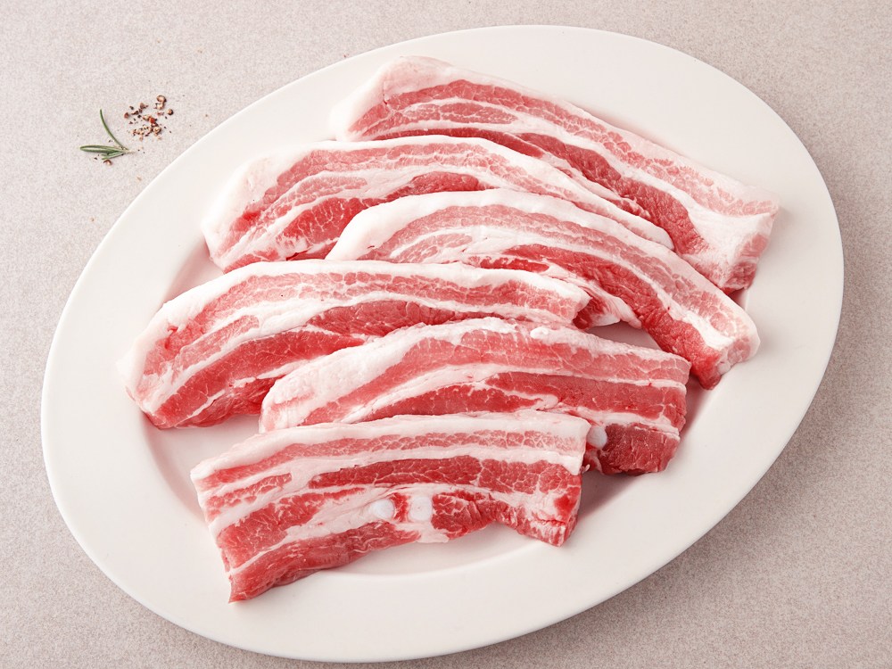 살코기와 지방이 조화롭게 어우러진 삼겹살이에요. 육질이 신선해 돼지고기 특유의 고소한 감칠맛이 씹을수록 진해지죠. 노릇하게 구워 한입 먹으면 풍부한 육즙이 입안 가득 퍼진답니다. 너무 바싹 익히면 신선한 돼지고기 본연의 맛을 놓칠 수 있으니, 적당한 굽기로 즐겨보세요.