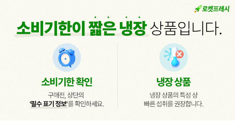| 배송방법 | 신선/냉장/냉동 | 배송비 | 무료배송 - 로켓프레시 상품 중 15,000원 이상 구매 시 무료배송 - 해당 서비스 가능 지역에 한함 |