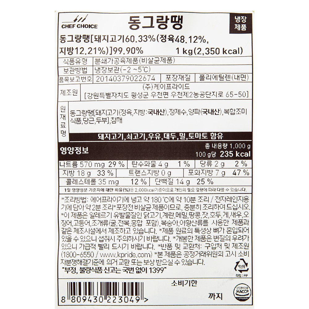 | 제품명 | 동그랑땡 | 식품의 유형 | 컨텐츠 참조 |