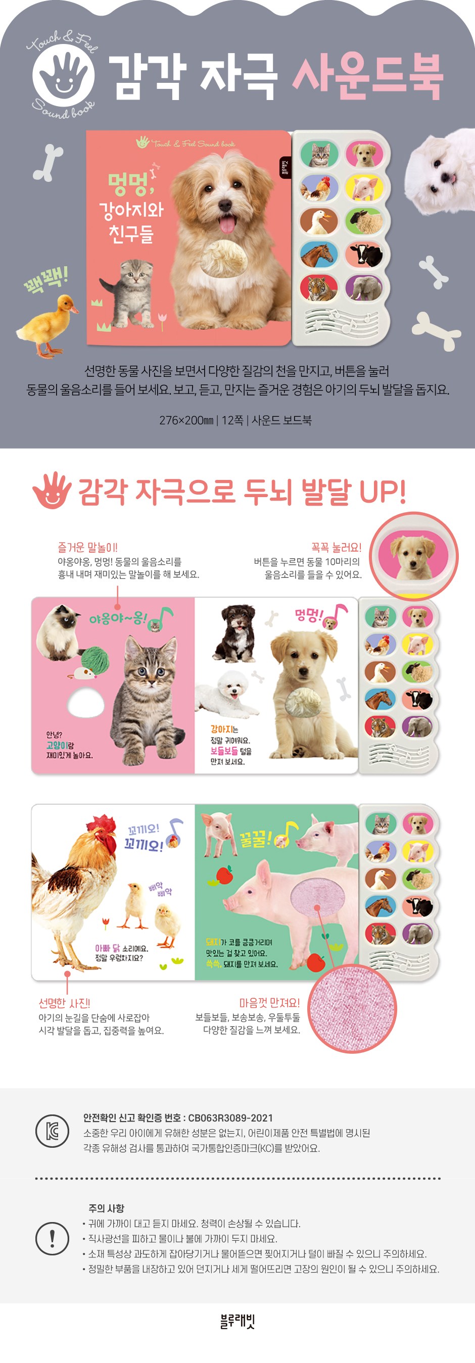| 품명 및 모델명 | 멍멍 강아지와 친구들:감각 자극 사운드북 | KC 인증정보 | CB063R3089-2021 |