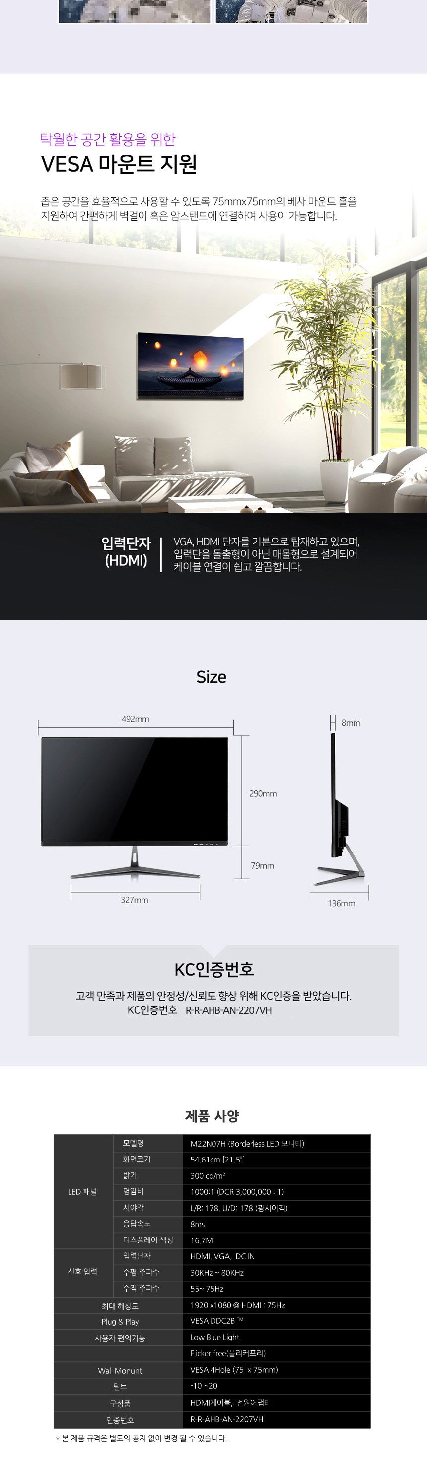 품명 및 모델명모니터 M22N07HKC 인증정보본품: R-R-AHB-AN-2207VH/ 어댑터:SU10581-17003