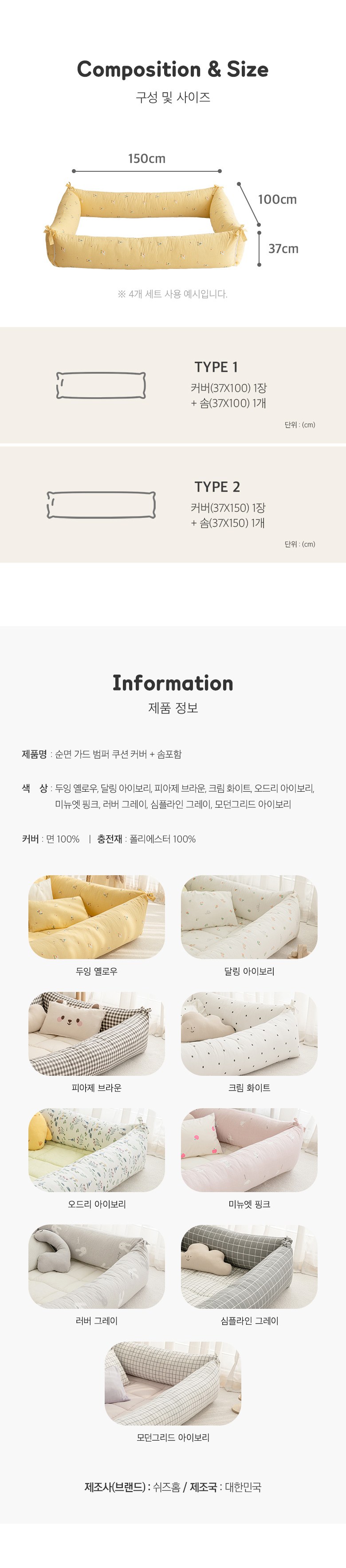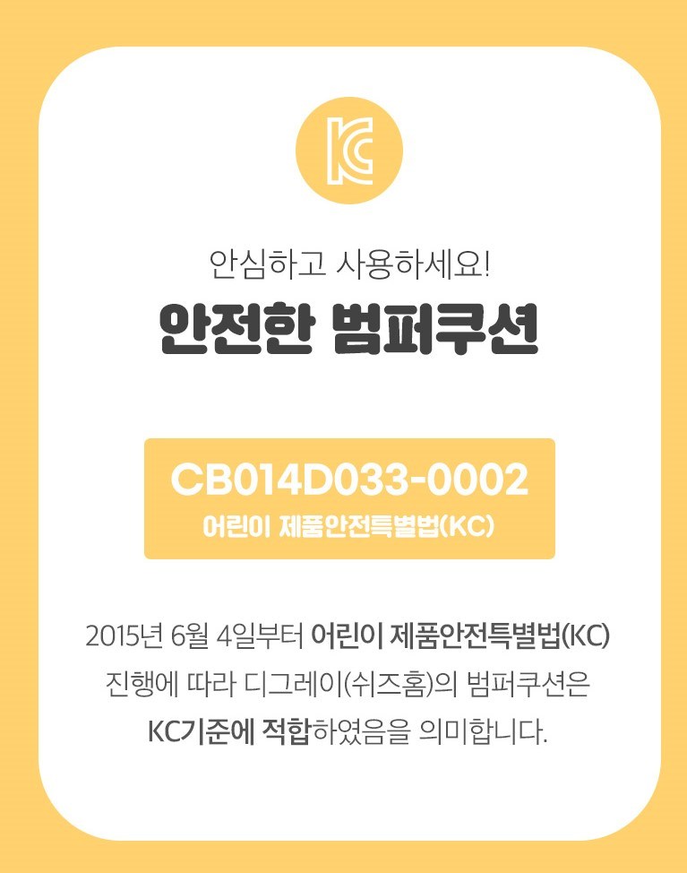 | 품명 및 모델명 | 쉬즈홈 러버 순면 범퍼쿠션 | KC 인증정보 | CB014D033-0002 |