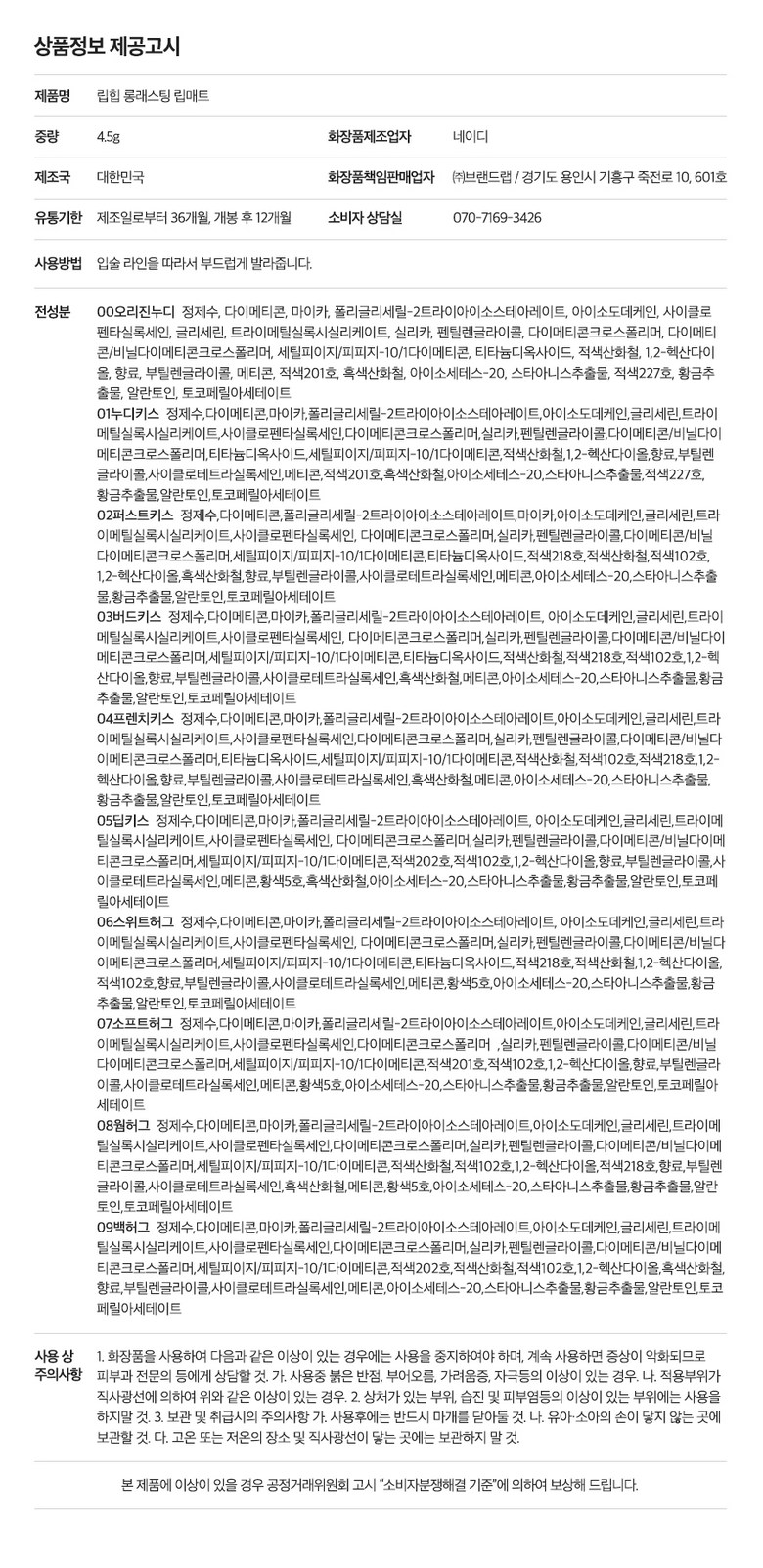 | 용량(중량) | 6g | 제품 주요 사양 | 모든피부용 |