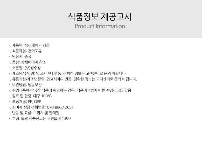 | 제품명 | 상품 상세페이지 참조 | 식품의 유형 | 상품 상세페이지 참조 |