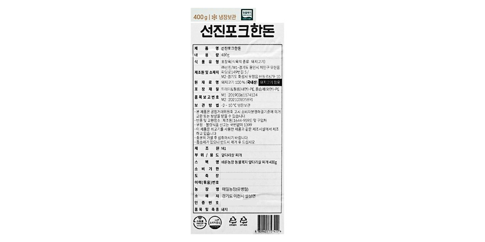 | 소비기한 또는 품질유지기한 | 소비기한(또는 유통기한) : 2026년 01월 31일 이거나 그 이후인 상품 | 세부 품목군별 표시사항 | 축산물 등급표시 : 해당 없음 / 이력번호 표시유무 : 이력번호 표시제품임 |