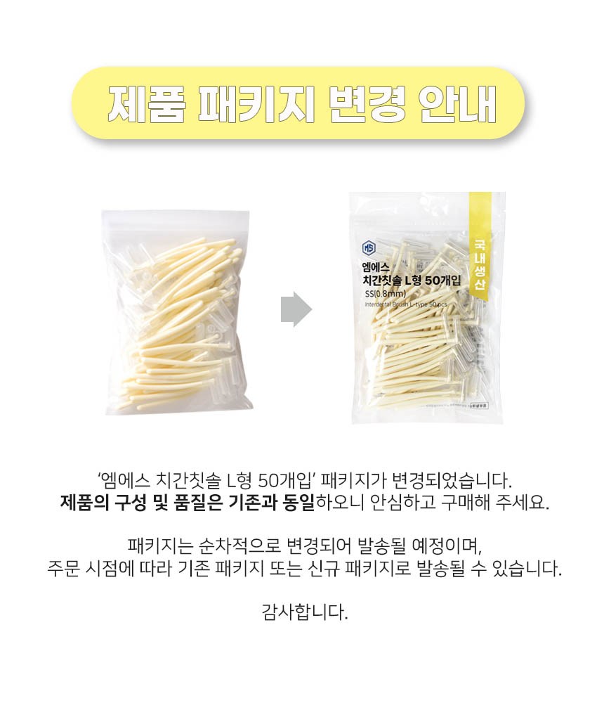| 품명 및 모델명 | 엠에스 치간칫솔 L형 ss (0.8mm) 50p | 인증/허가 사항 | 위생용품 |
