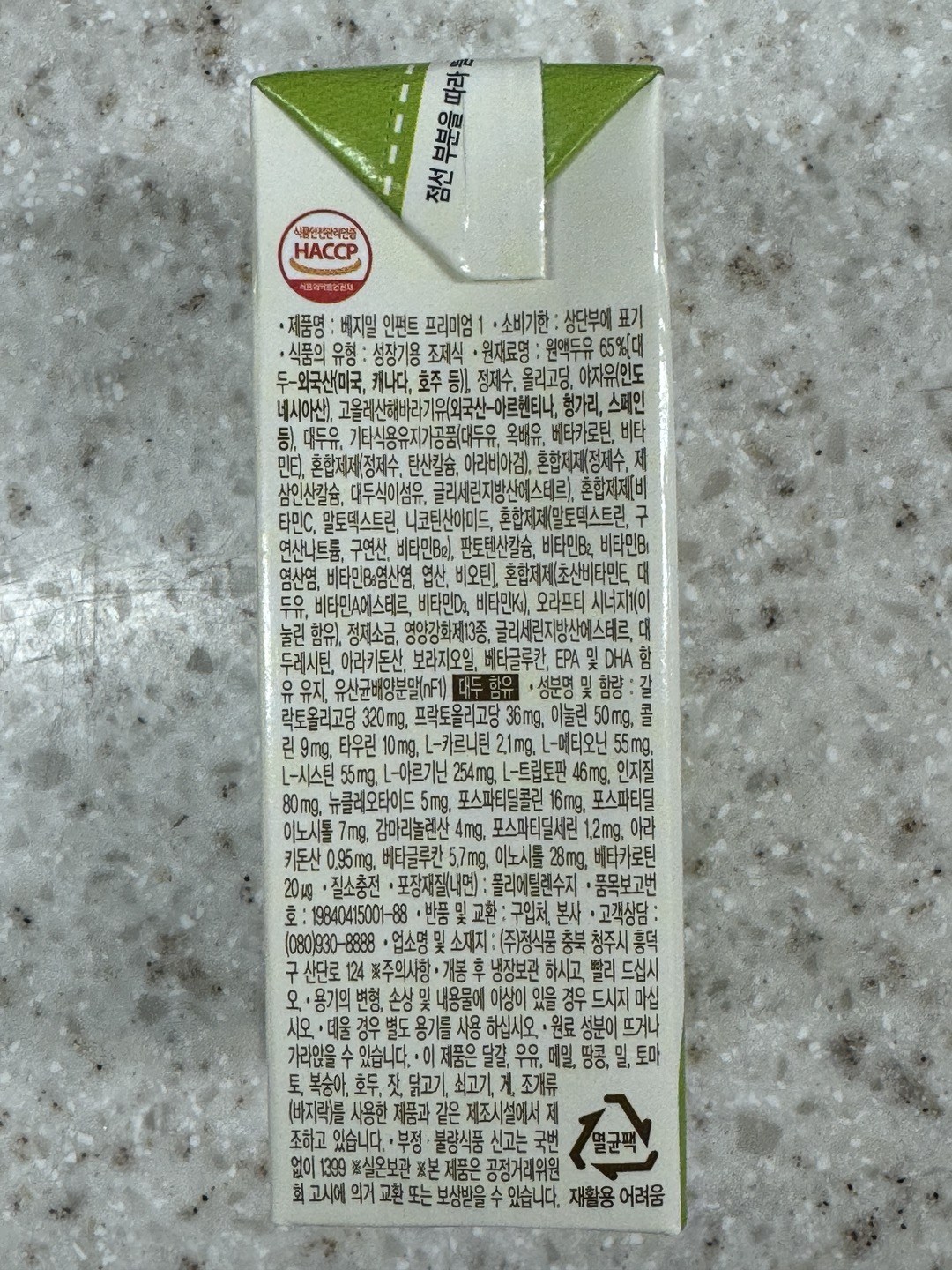 | 포장단위별 내용물의 용량(중량), 수량 | 190ml, 16팩 | 원재료명 및 함량 | 컨텐츠 참조 |