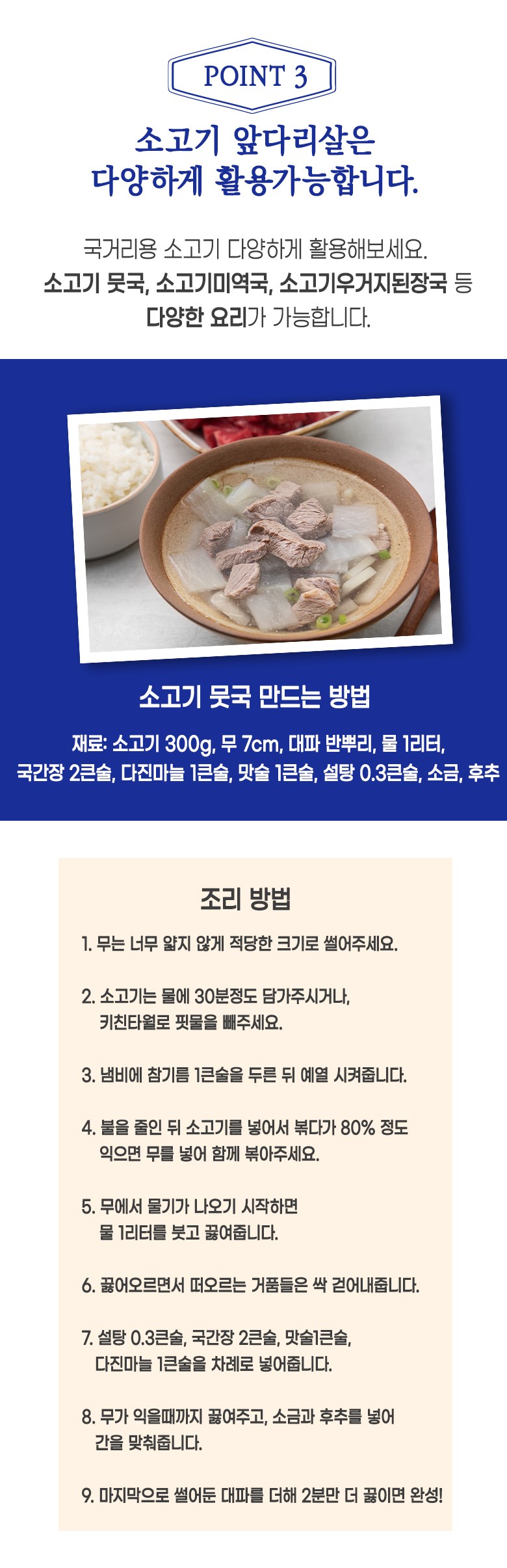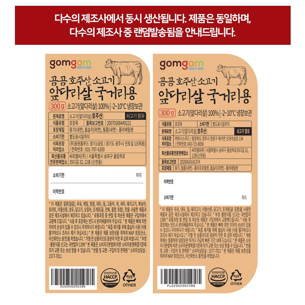 | 품목 또는 명칭 | 곰곰 호주산 소고기 앞다리살 국거리용 | 포장단위별 내용물의 용량(중량),수량,크기 | 300g x 2개 |